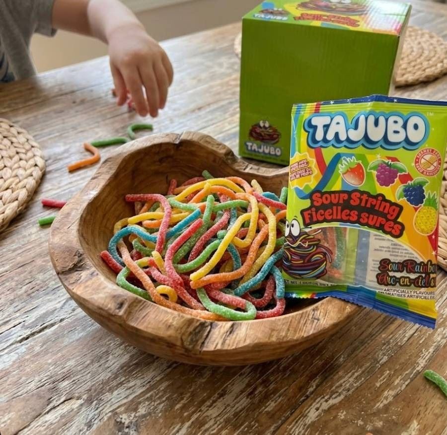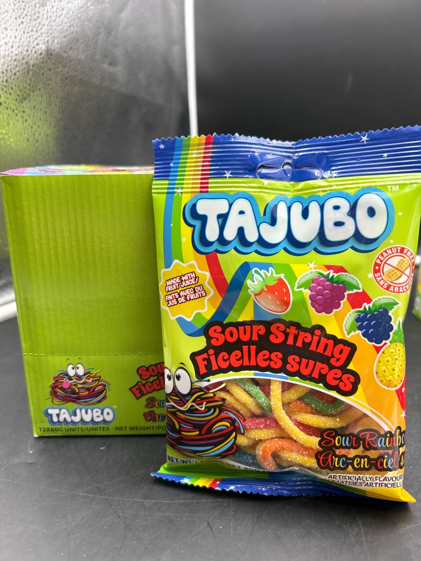 Lot of 12 Tajubo Sour String Candy – Sour Rainbow Flavor, 80 g each