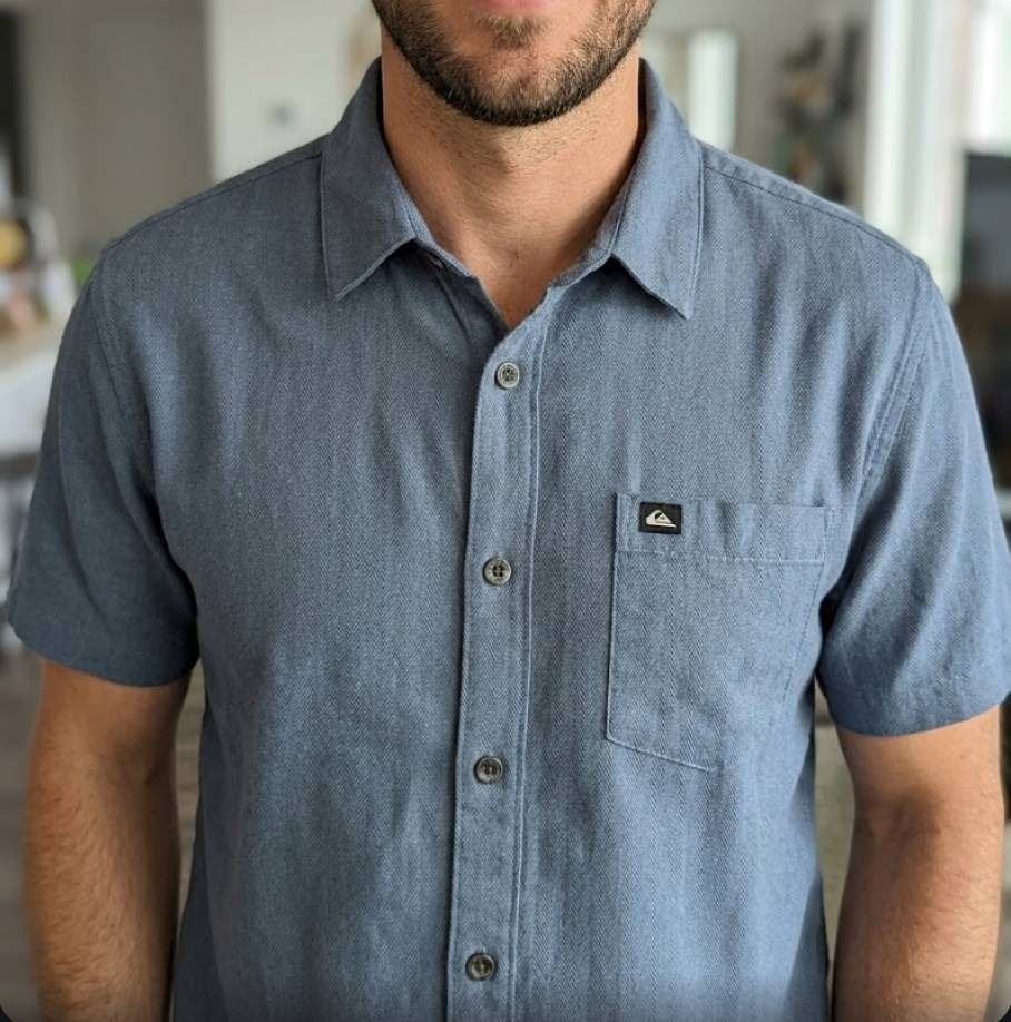 Quiksilver Men’s Short Sleeve Shirt in Blue Size Large