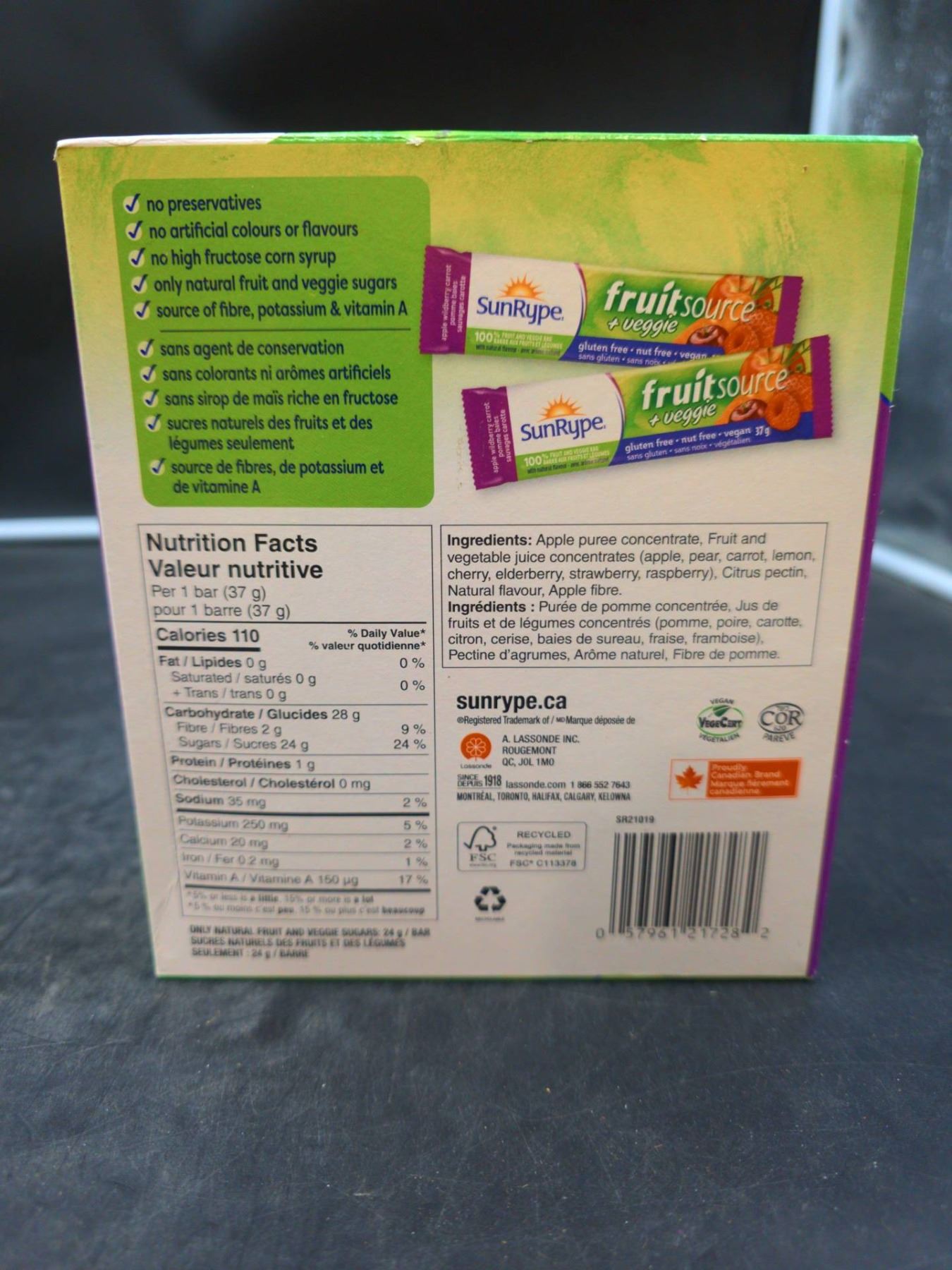 Lot 357 SunRype FruitSource + Veggie Bars, 15 Count