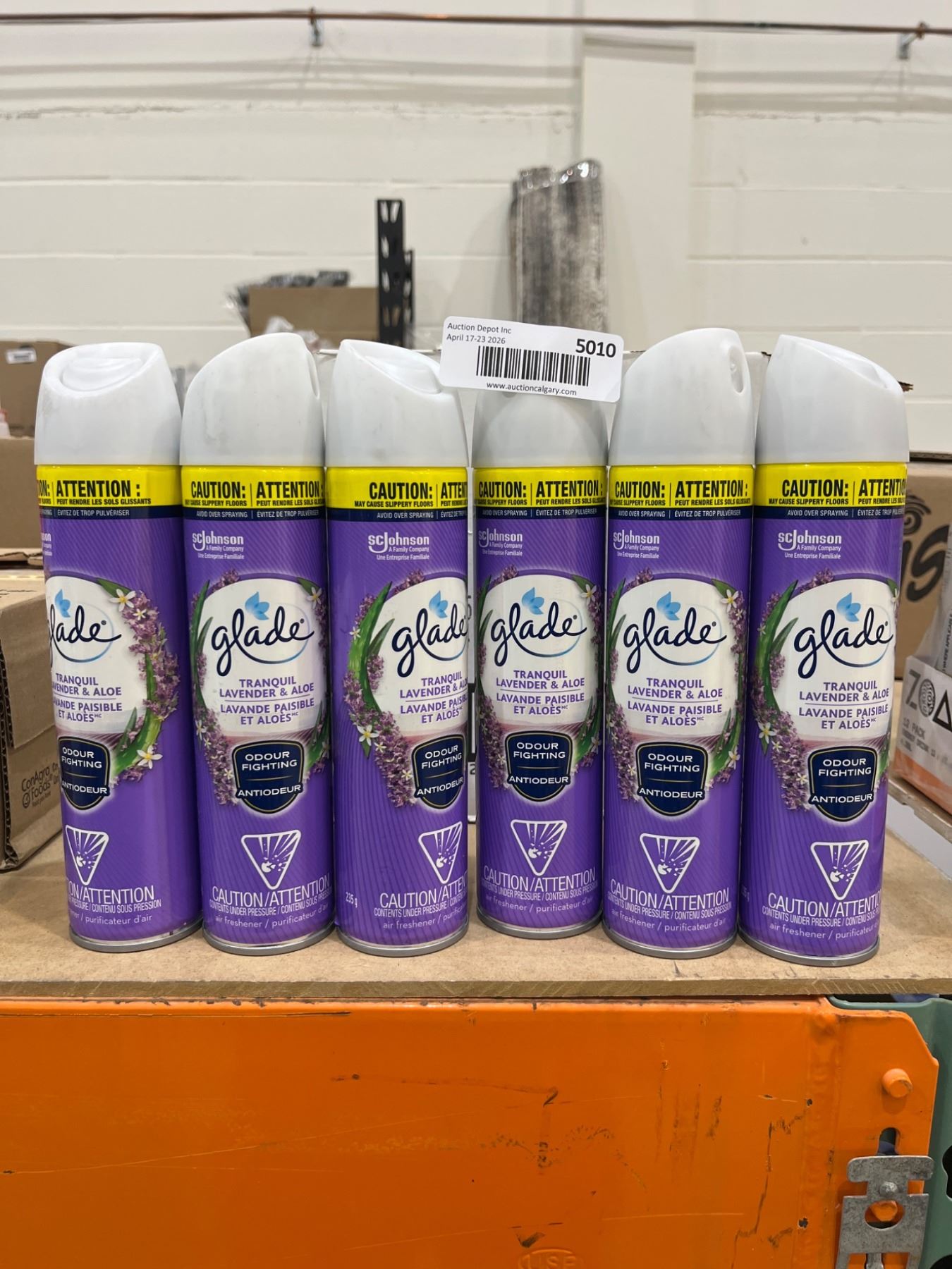 Lot 5011 Lot of 6 -Â Glade Lavender and Aloe 235g Aerosol Spray Cans