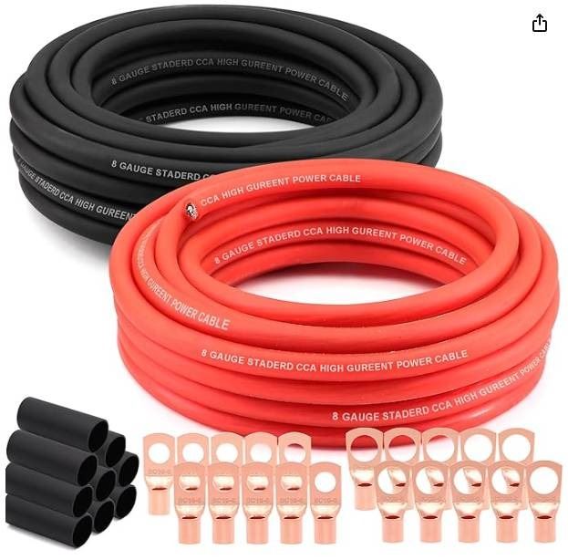 GearIT 8 Gauge 25 Ft Power and Ground Wire Set, Black and Red