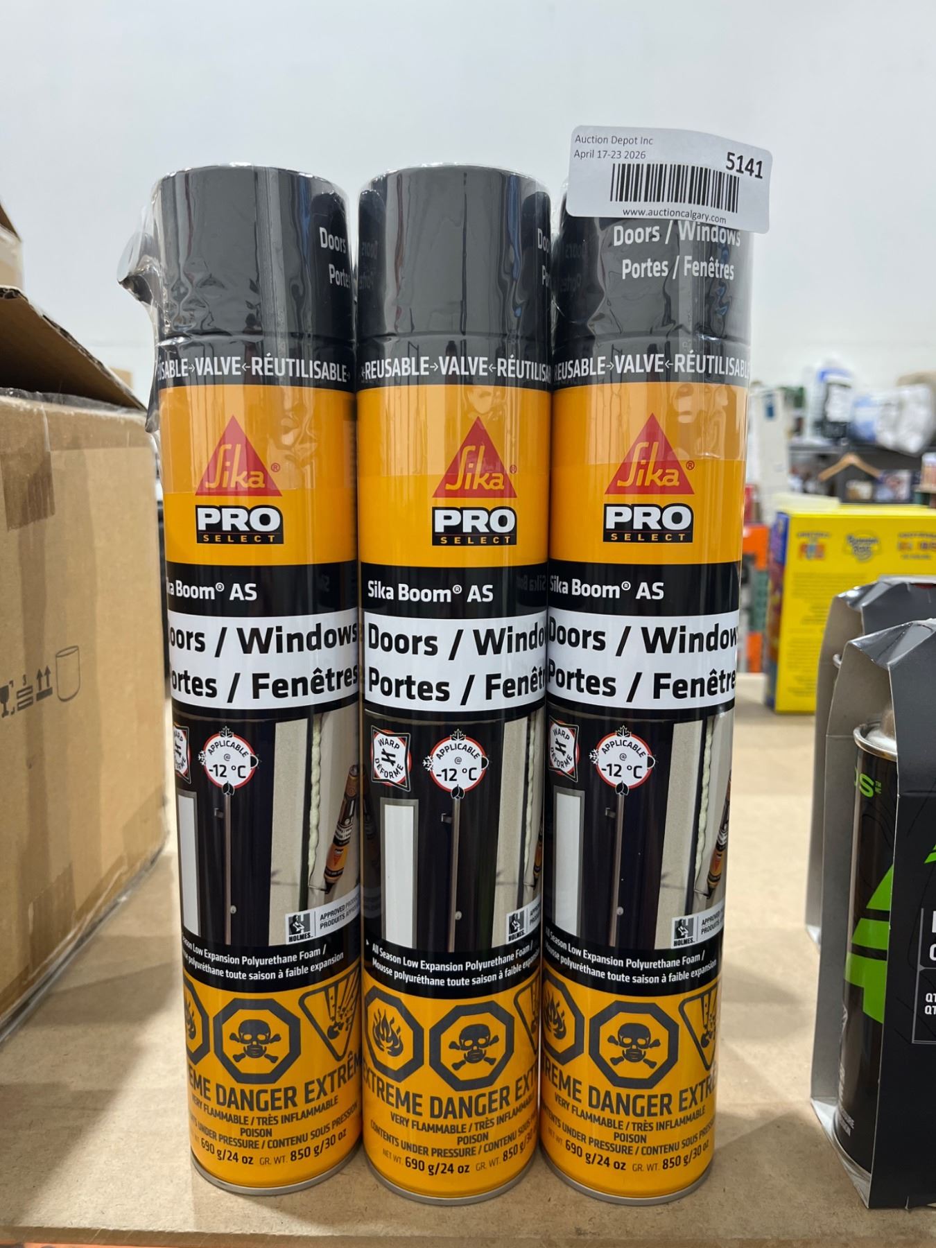 Lot 5141 3 Sika Boom AS 690 g Spray Foam Insulation Cans
