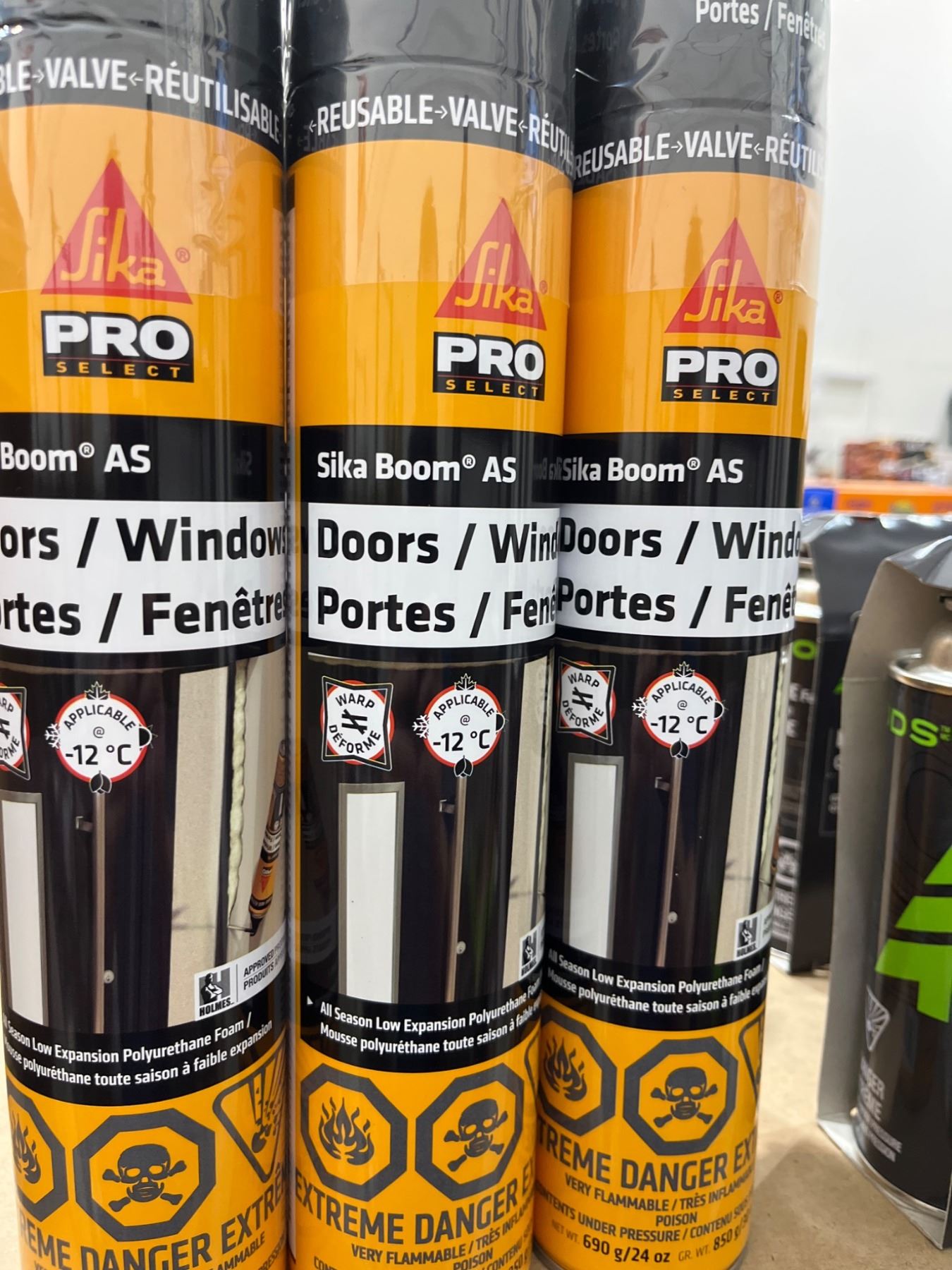 3 Sika Boom AS 690 g Spray Foam Insulation Cans