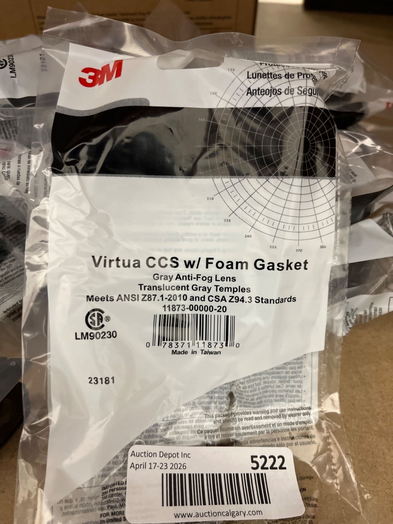Lot 5222 10 3M Virtua CCS Safety Glasses with Foam Gasket, Gray Anti-Fog Lens