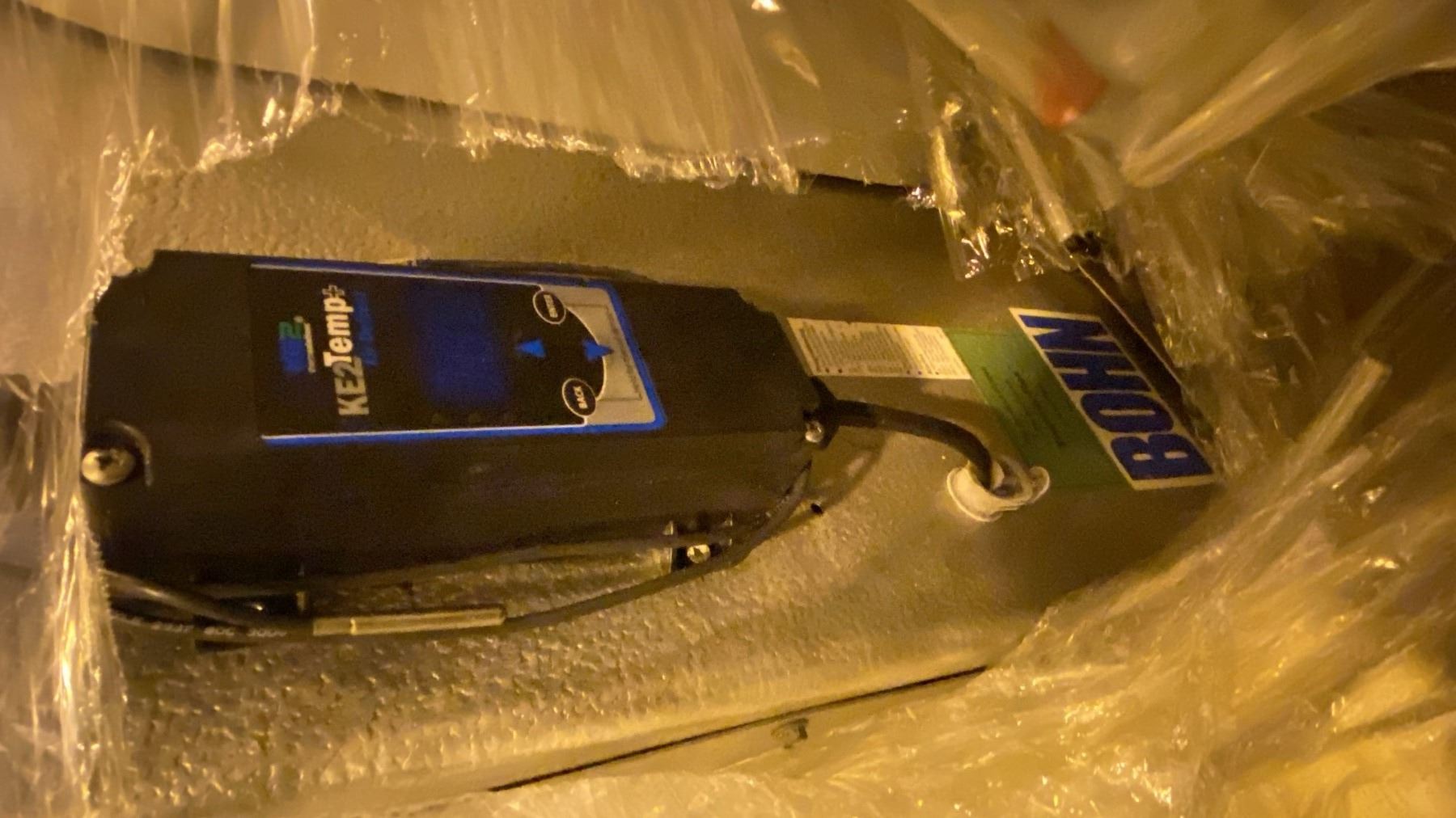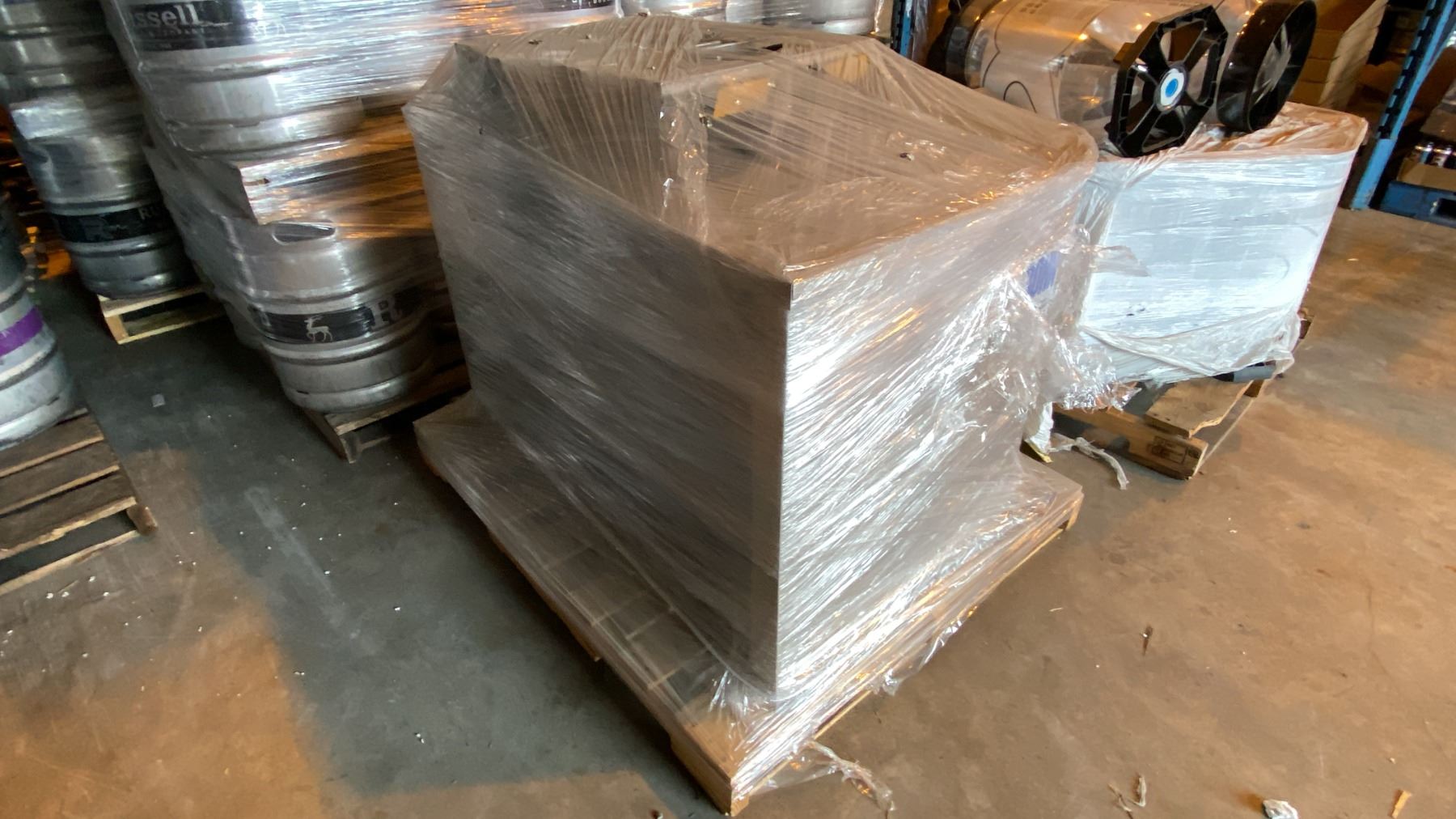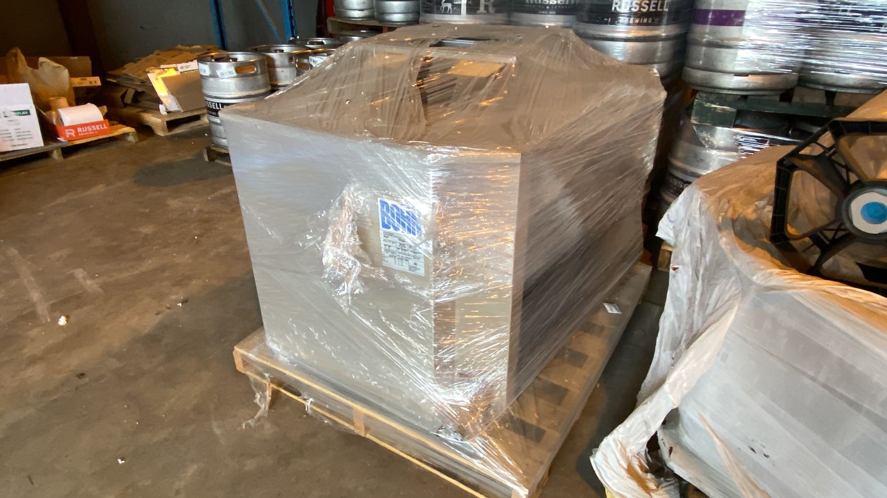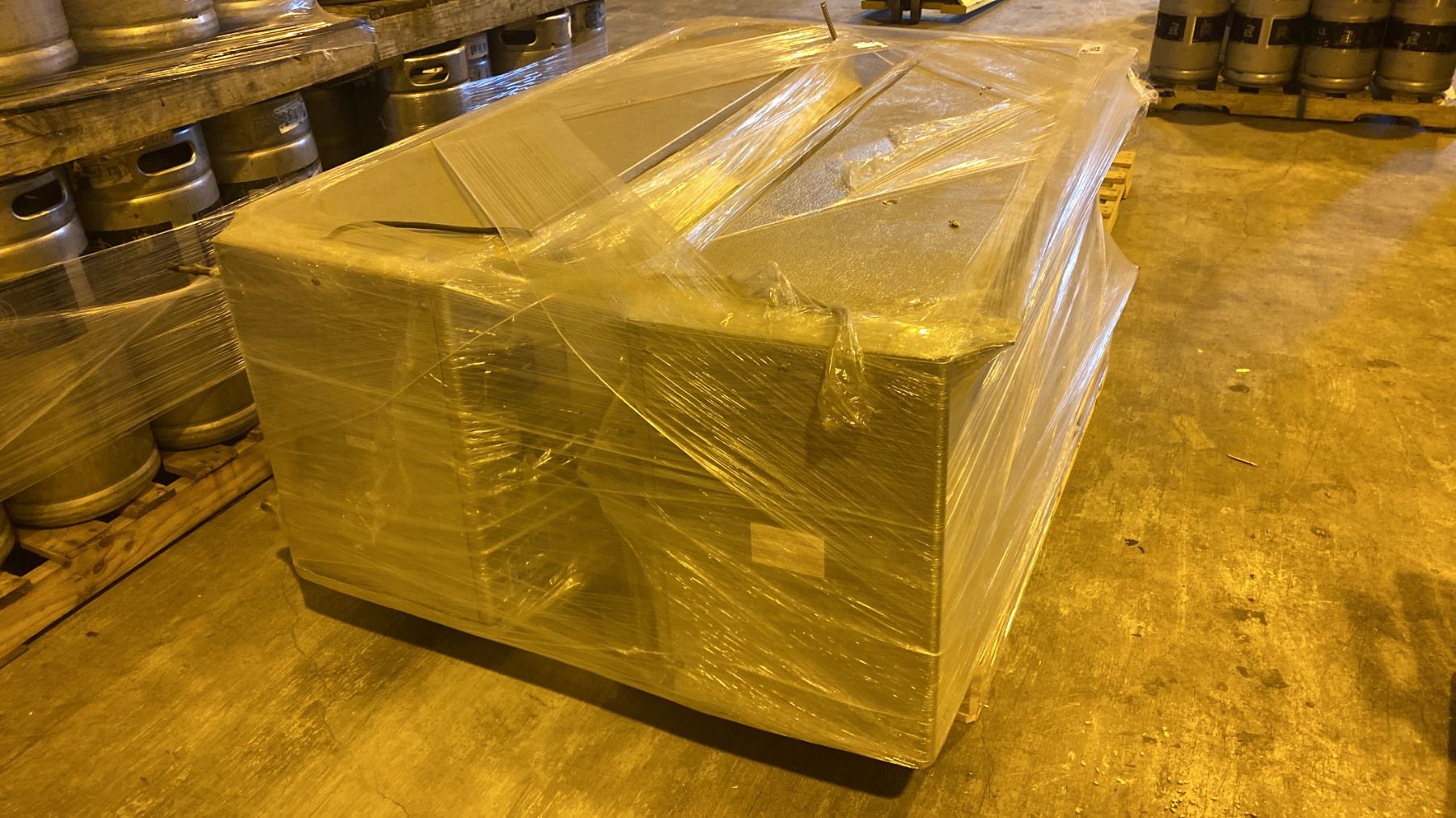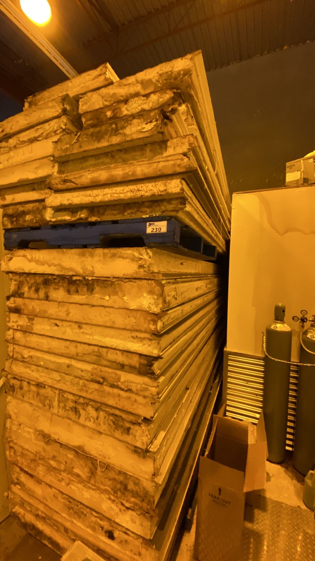 Lot 230 LARGE WALK IN COOLER WITH (4) BONN REFRIGERATION UNITS AND PALLET OF ELECTRICAL AND LIGHTS