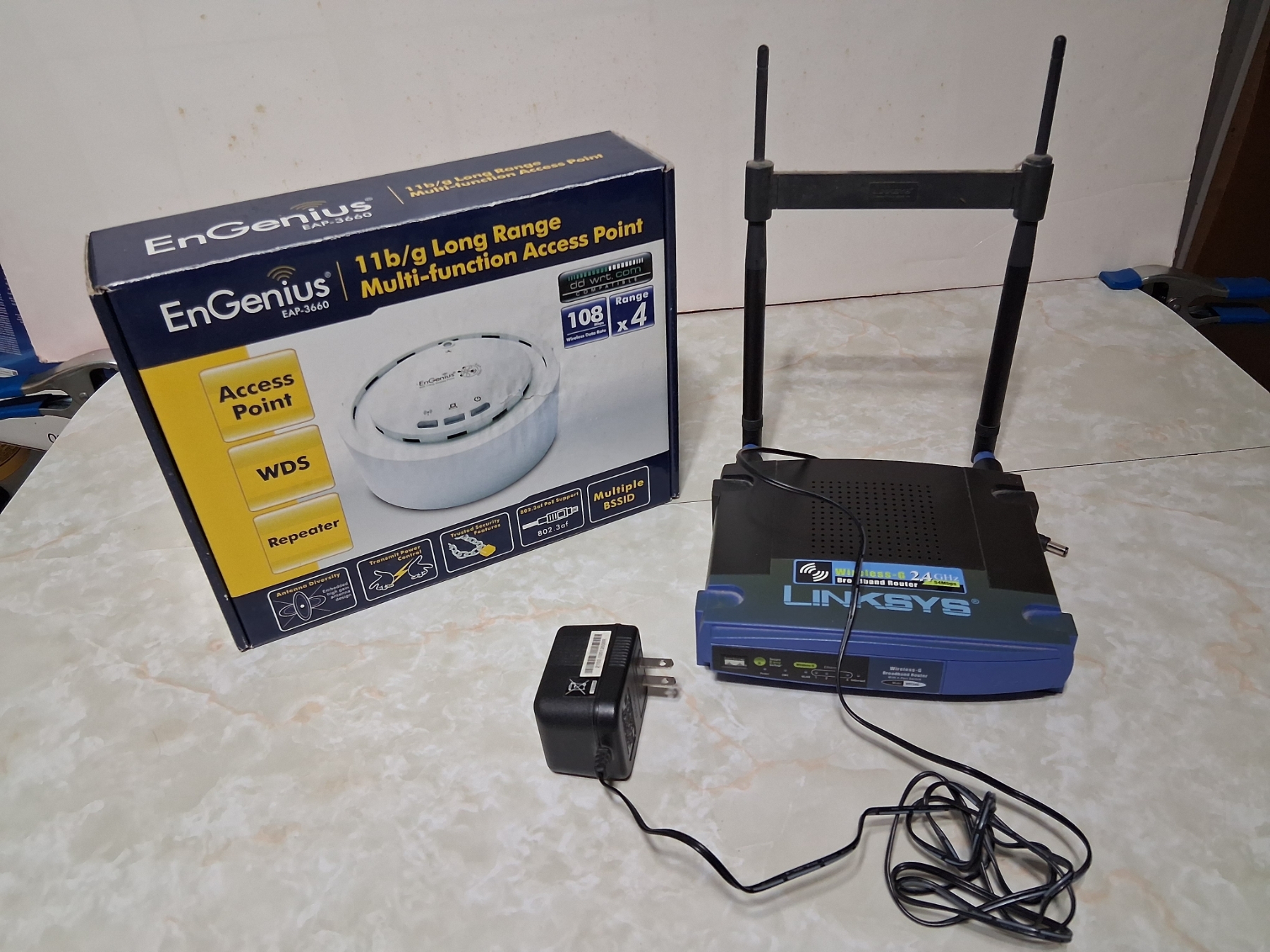 Lot 166D LONG-RANGE ACCESS POINT REPEATER AND LINKSYS WIRELESS WIFI UNIT