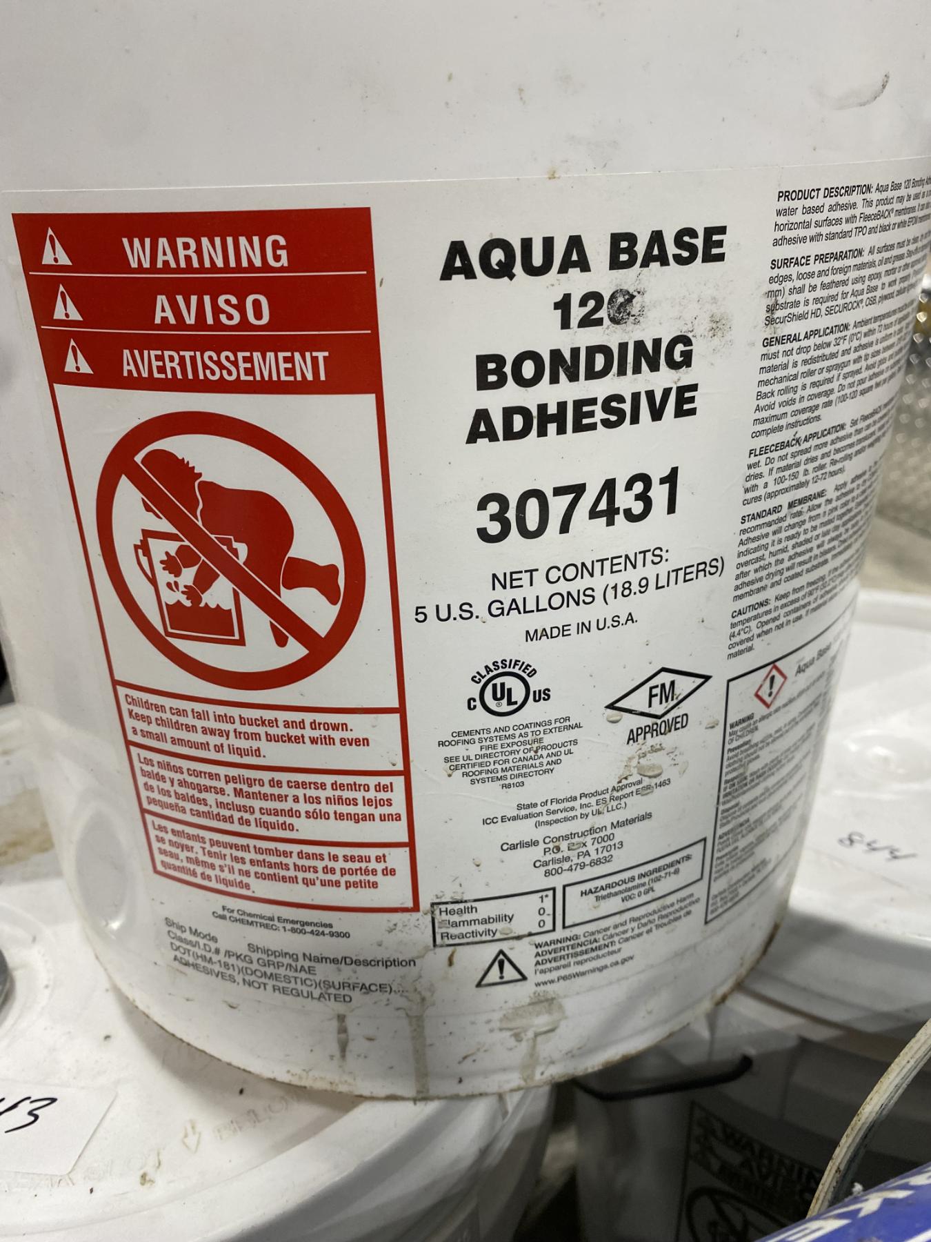 Lot 842 5 GALLONS OF AQUA BASE BONDING AND ADHESIVE