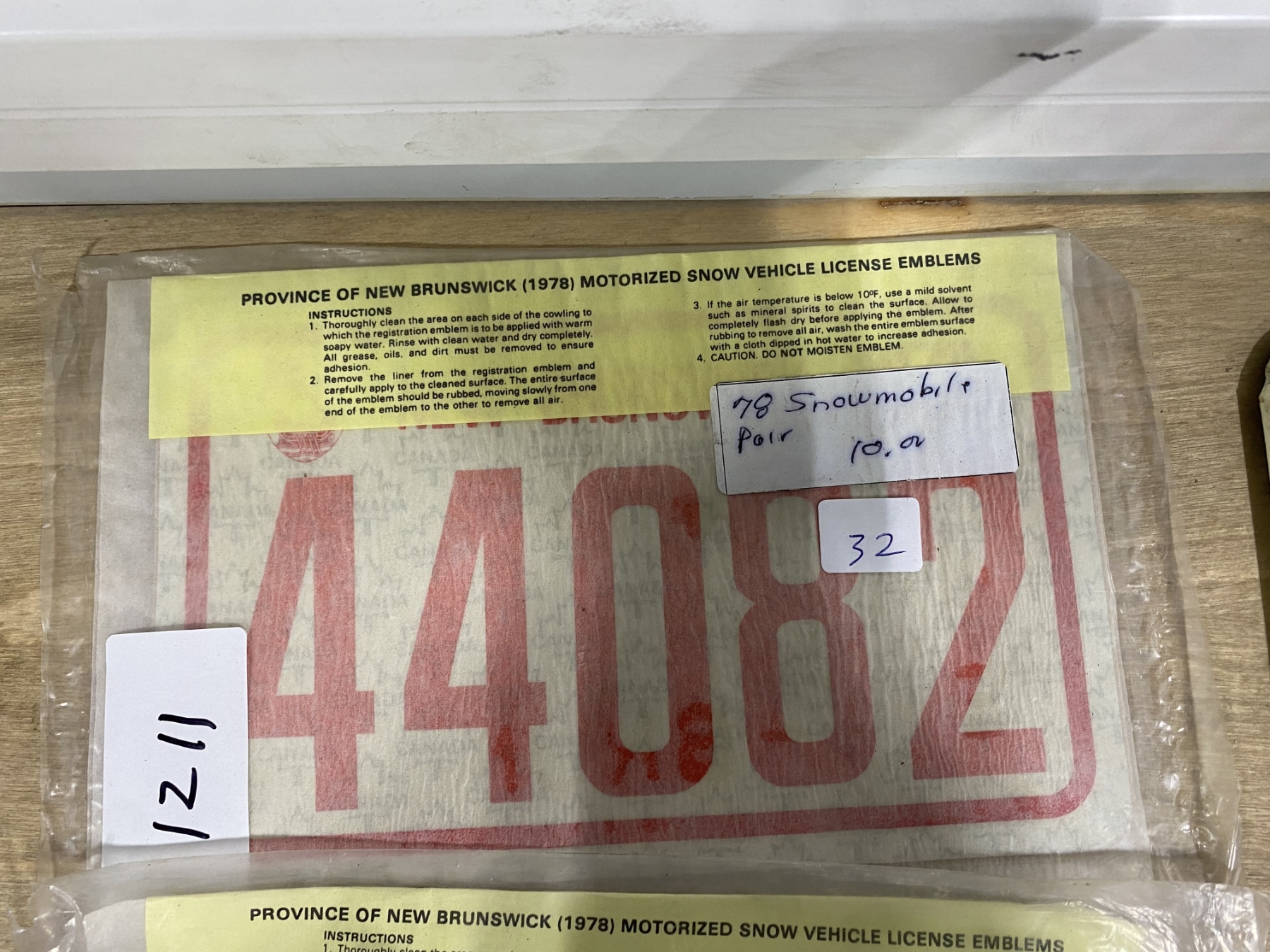 Lot 1211 1978 NB SNOWMOBILE LICENSE PLATE