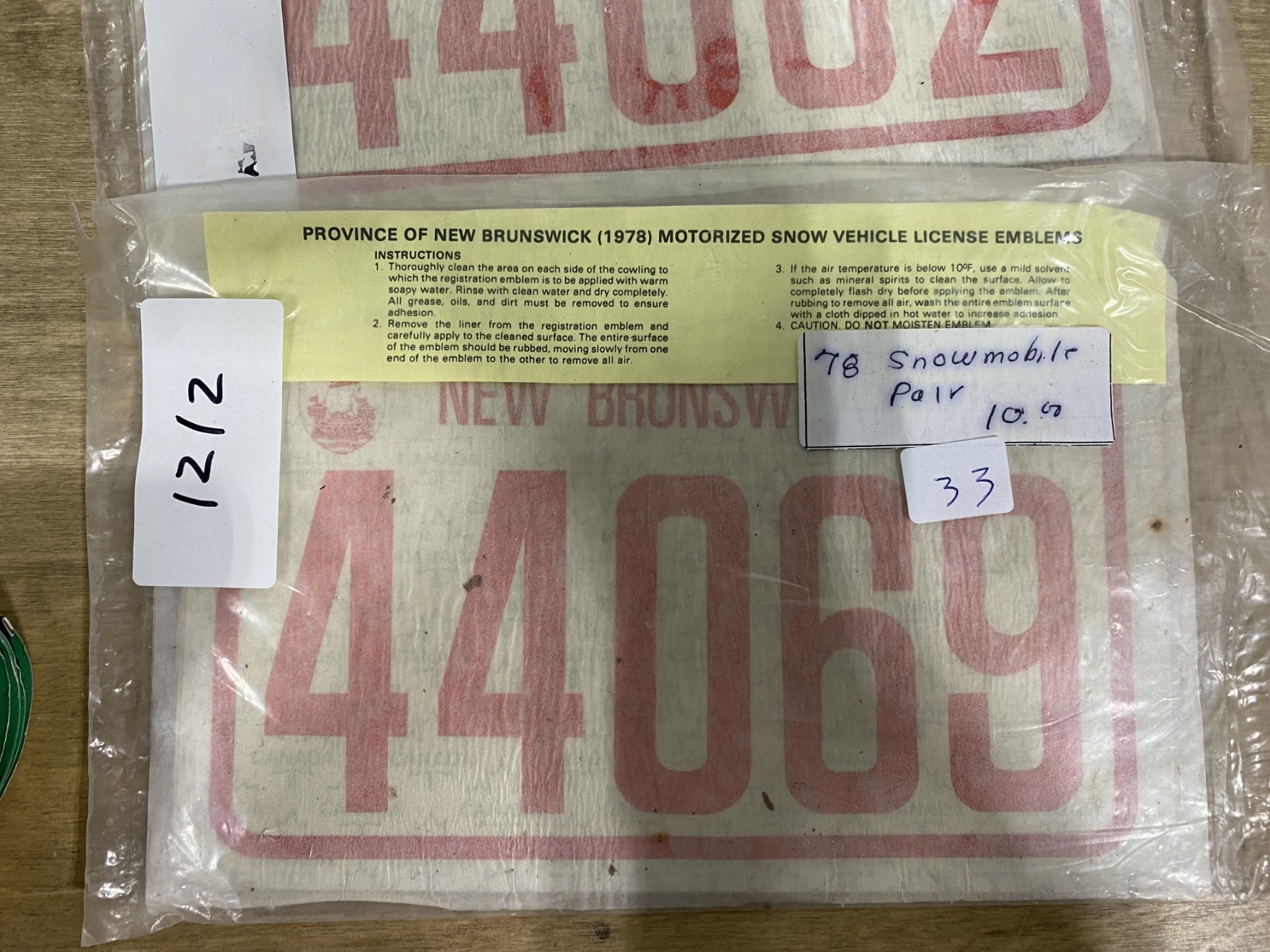 Lot 1212 1978 NB SNOWMOBILE LICENSE PLATE