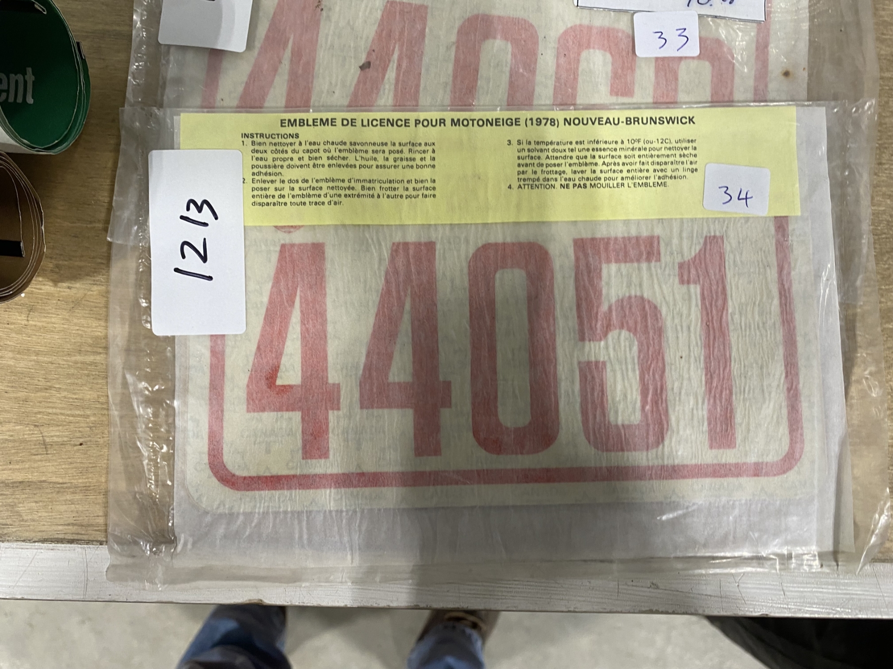 Lot 1213 1978 NB SNOWMOBILE LICENSE PLATE