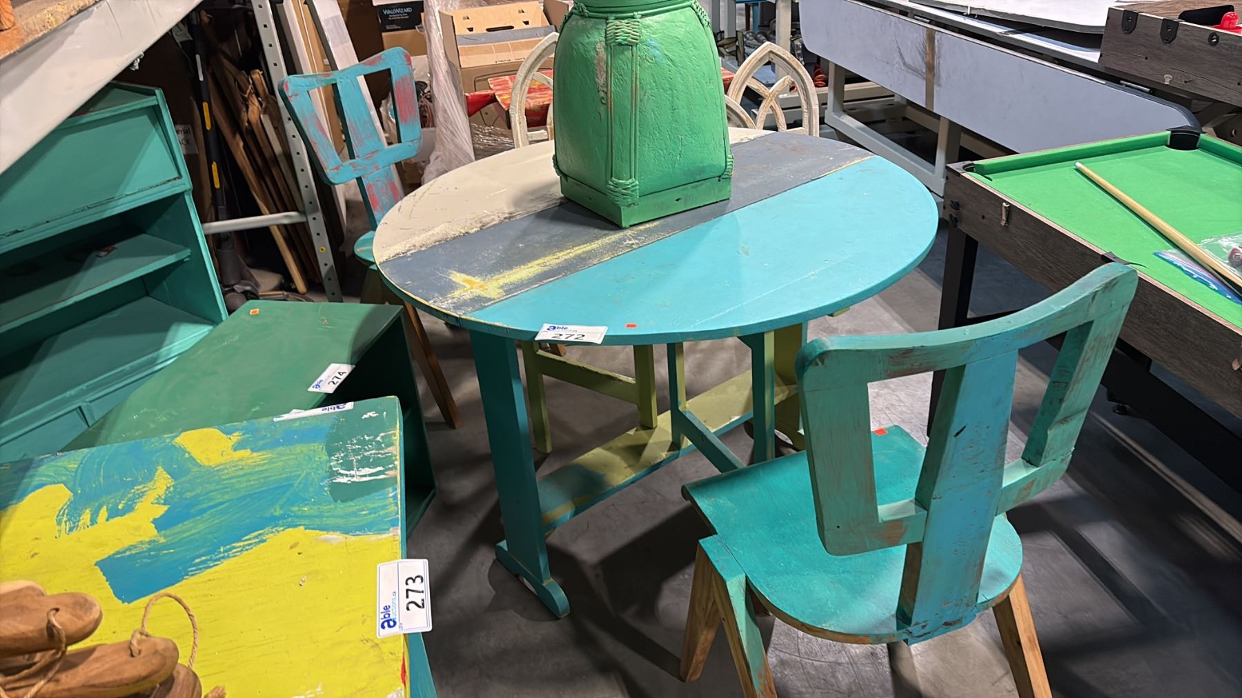 Lot 272 EXOTIC WOOD 42" ROUND TABLE, 2 SIDE CHAIRS & ASIAN THEMED BASKET