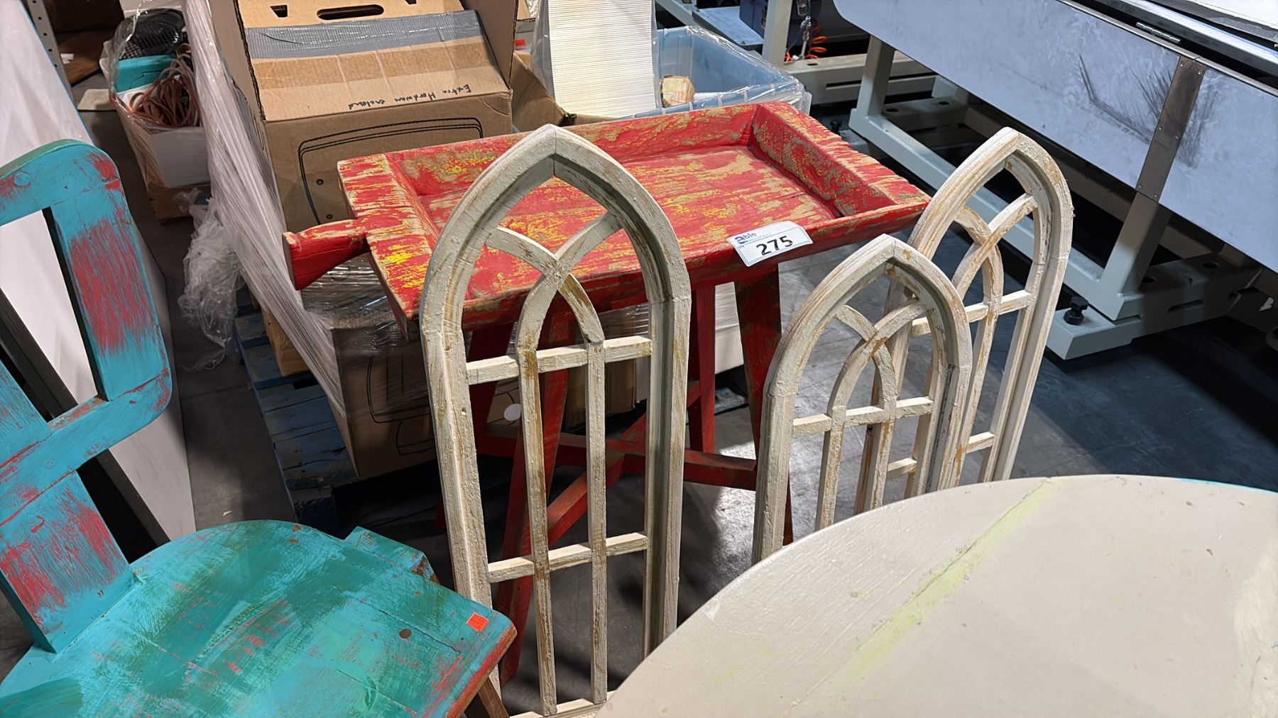 Lot 275 EXOTIC WOOD BASIN TABLE & 3 WALL HANGINGS