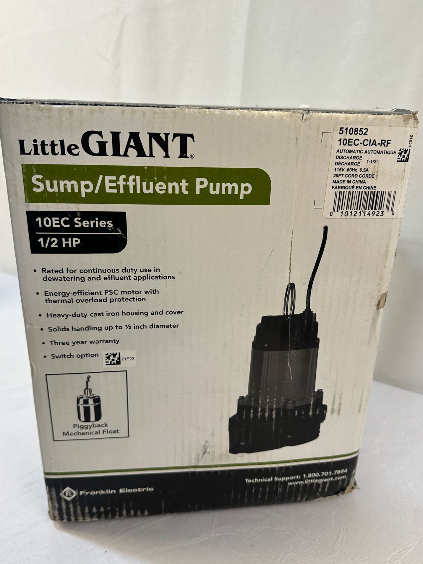 Unused in box - 10EC Series 1/2HP 12FT Cord 115V 60Hz 6.5A