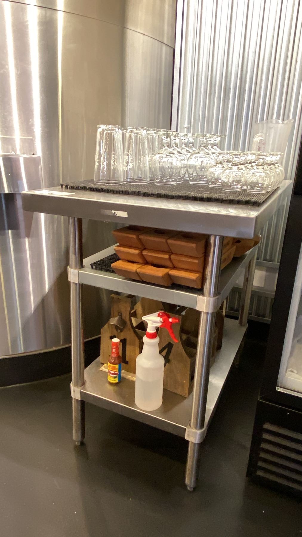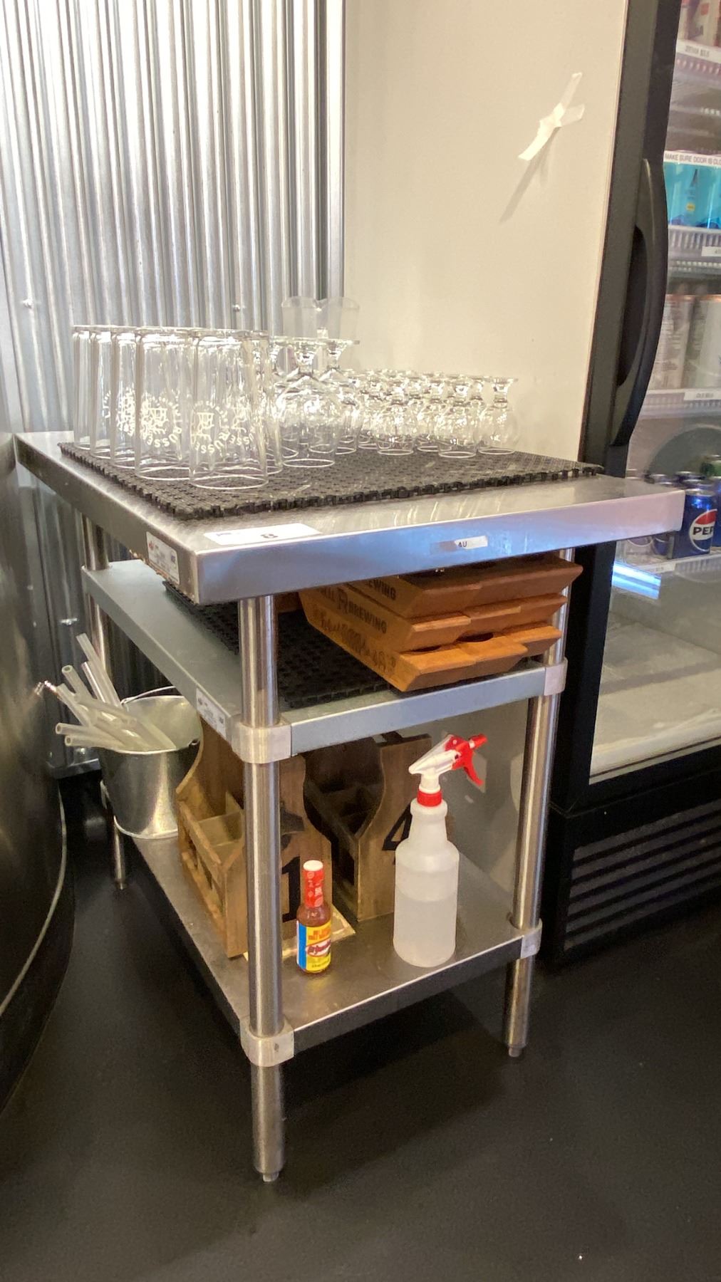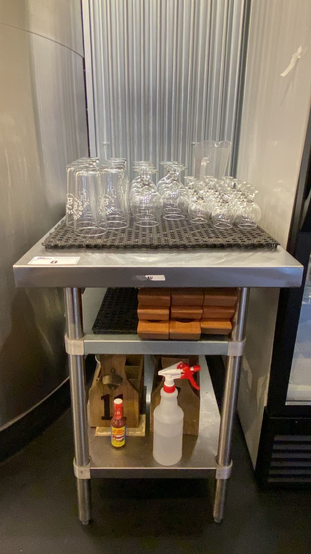 Lot 8 EFI STAINLESS STEEL PREP TABLE AND CONTENTS - APPROX. 3FT ACROSS X 2FT WIDE X 3FT HIGH
