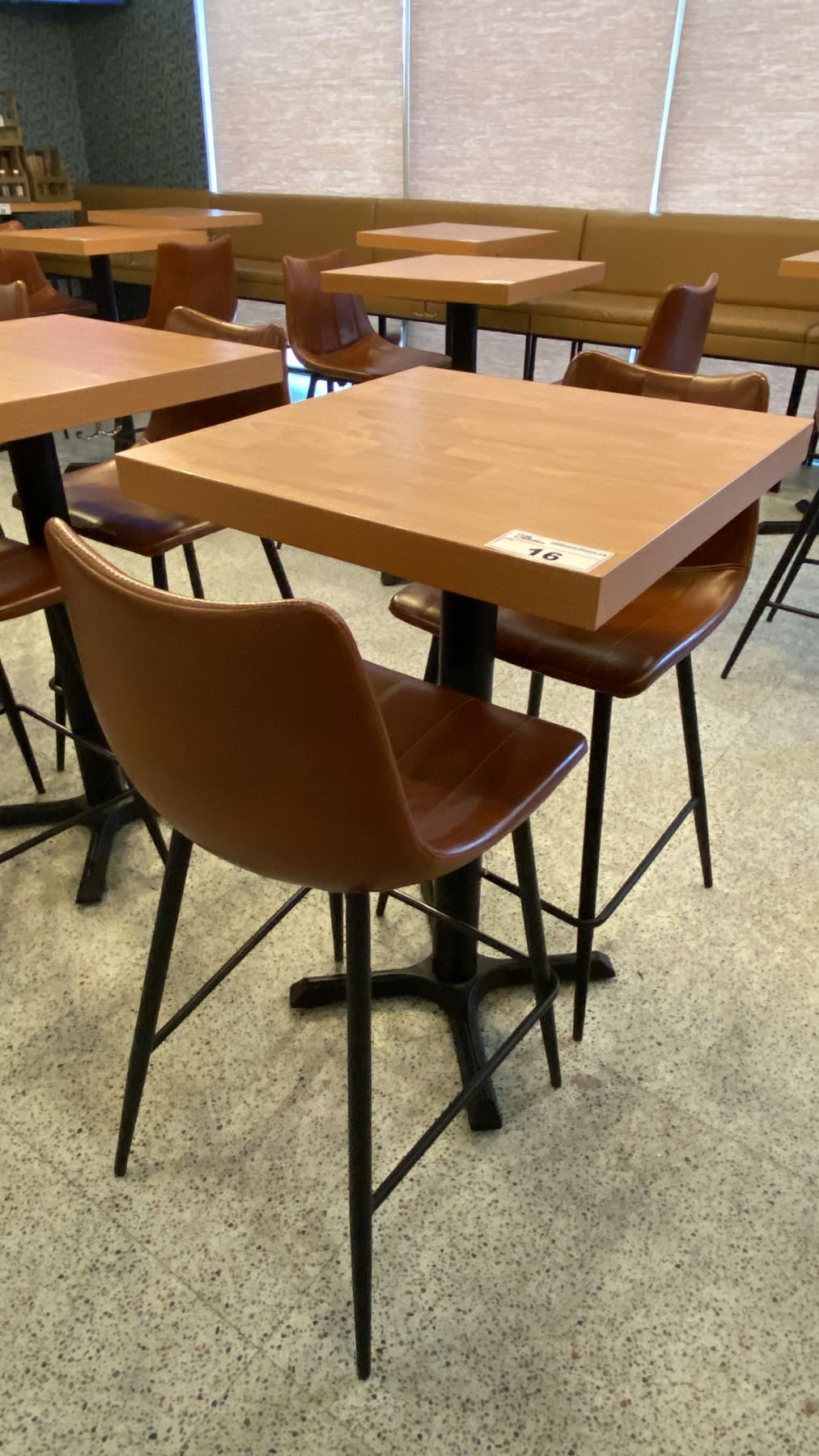 Lot 16 SMALL COUNTER HEIGHT BAR/BISTRO TABLE WITH 2 BROWN LEATHER UPHOLSTERED CHAIRS -