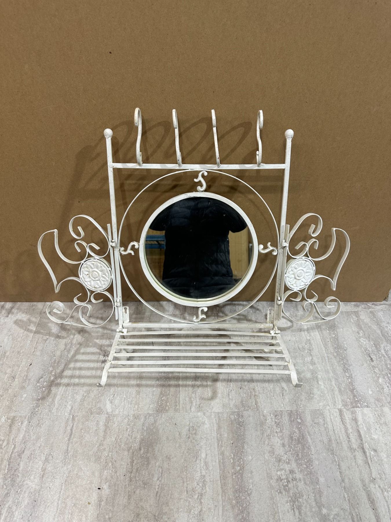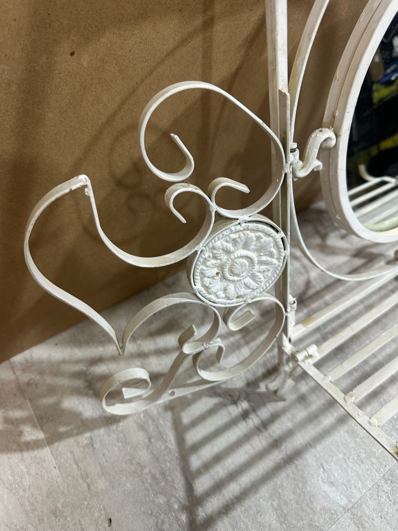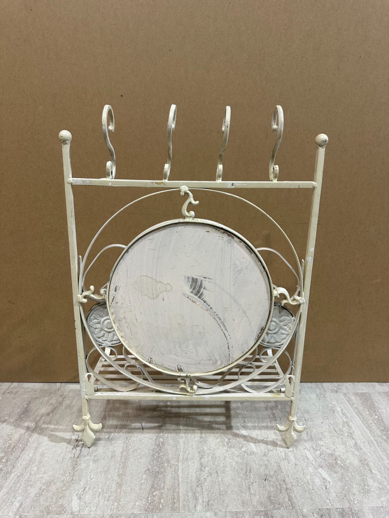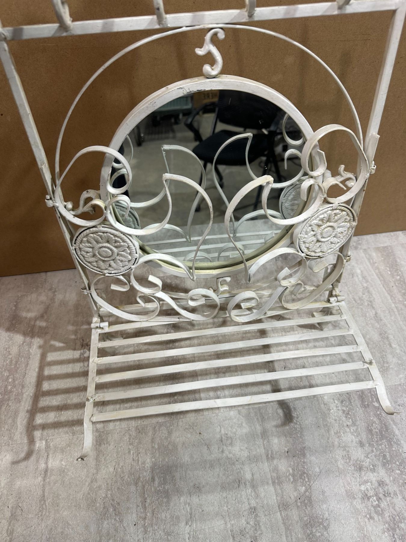 Lot 74 Vintage Style White Wrought Iron Shelf & Mirror