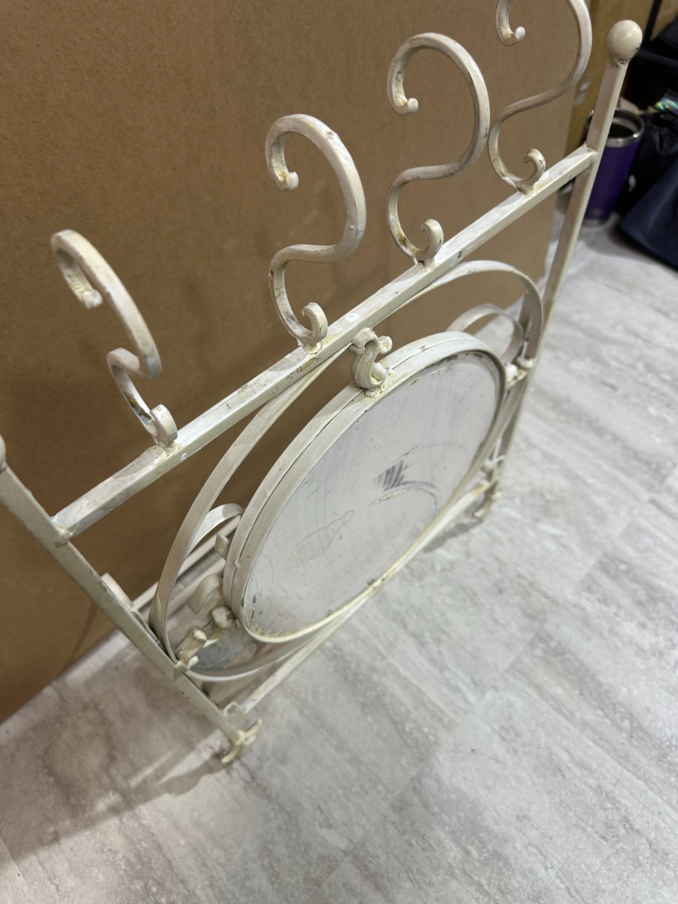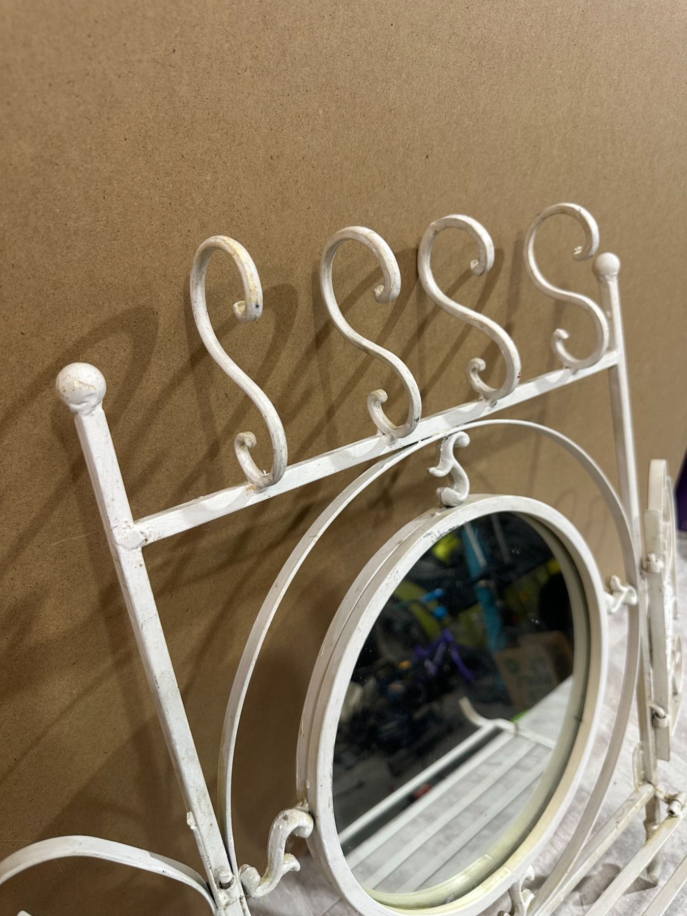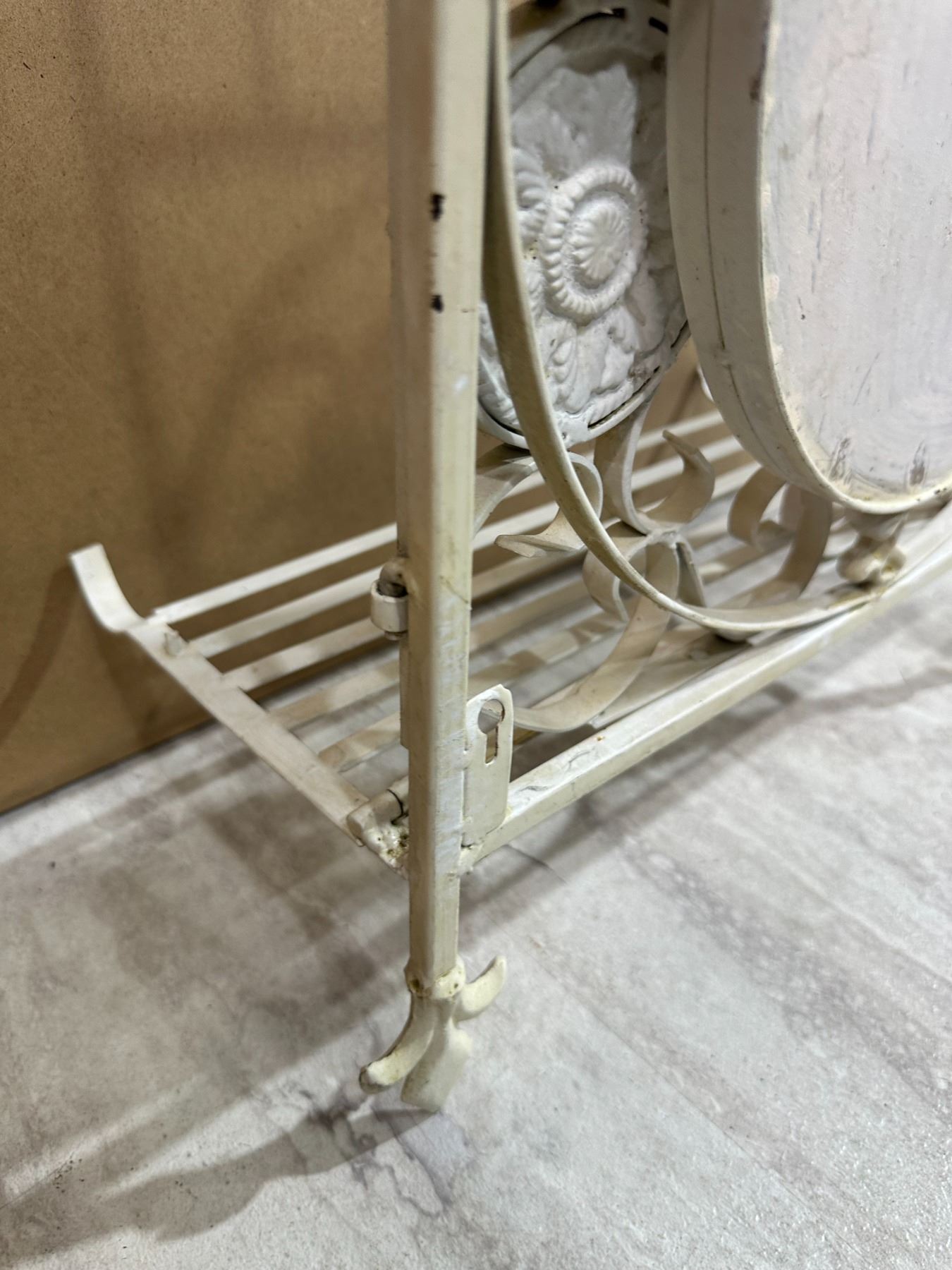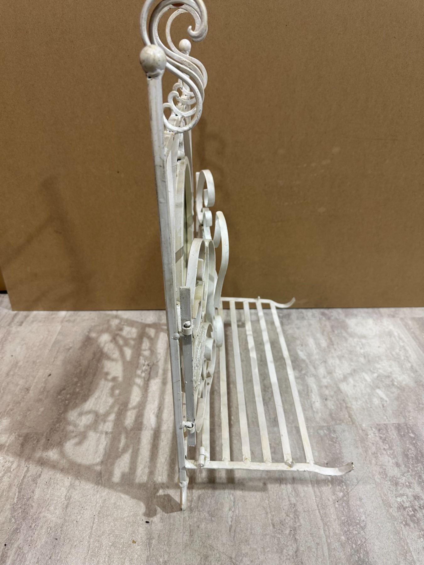 Lot 74 Vintage Style White Wrought Iron Shelf & Mirror