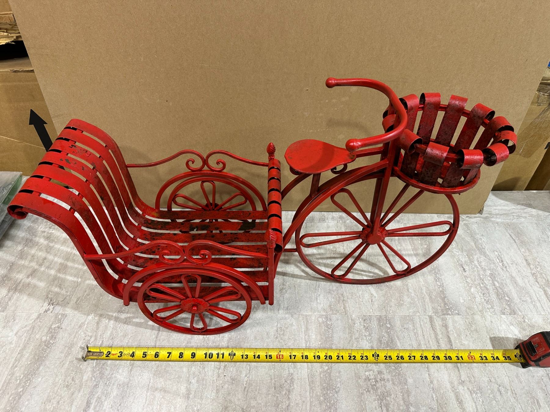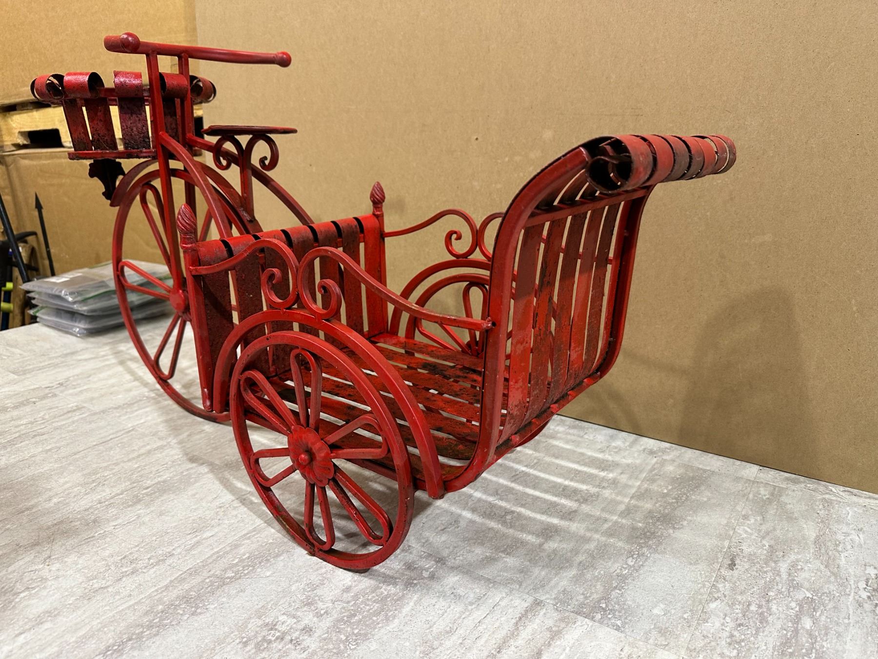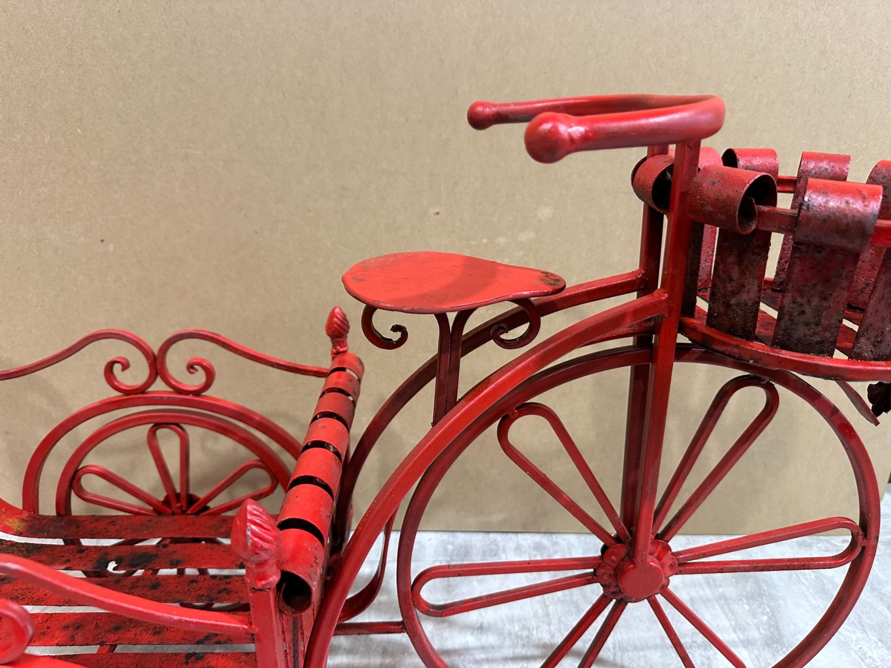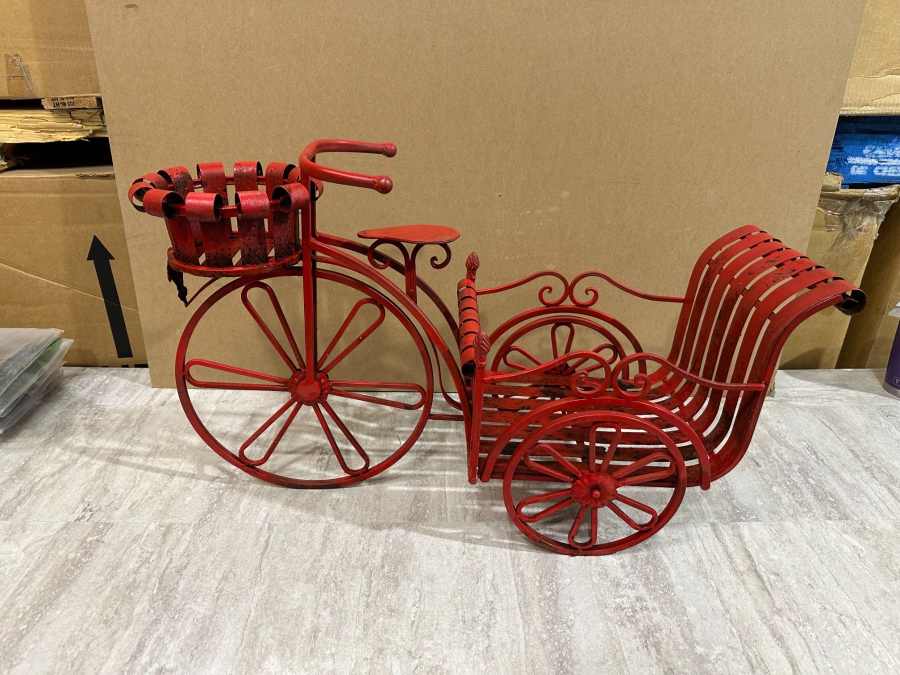 Lot 85 Red Metal Tricycle Garden Décor - Plant Holder
