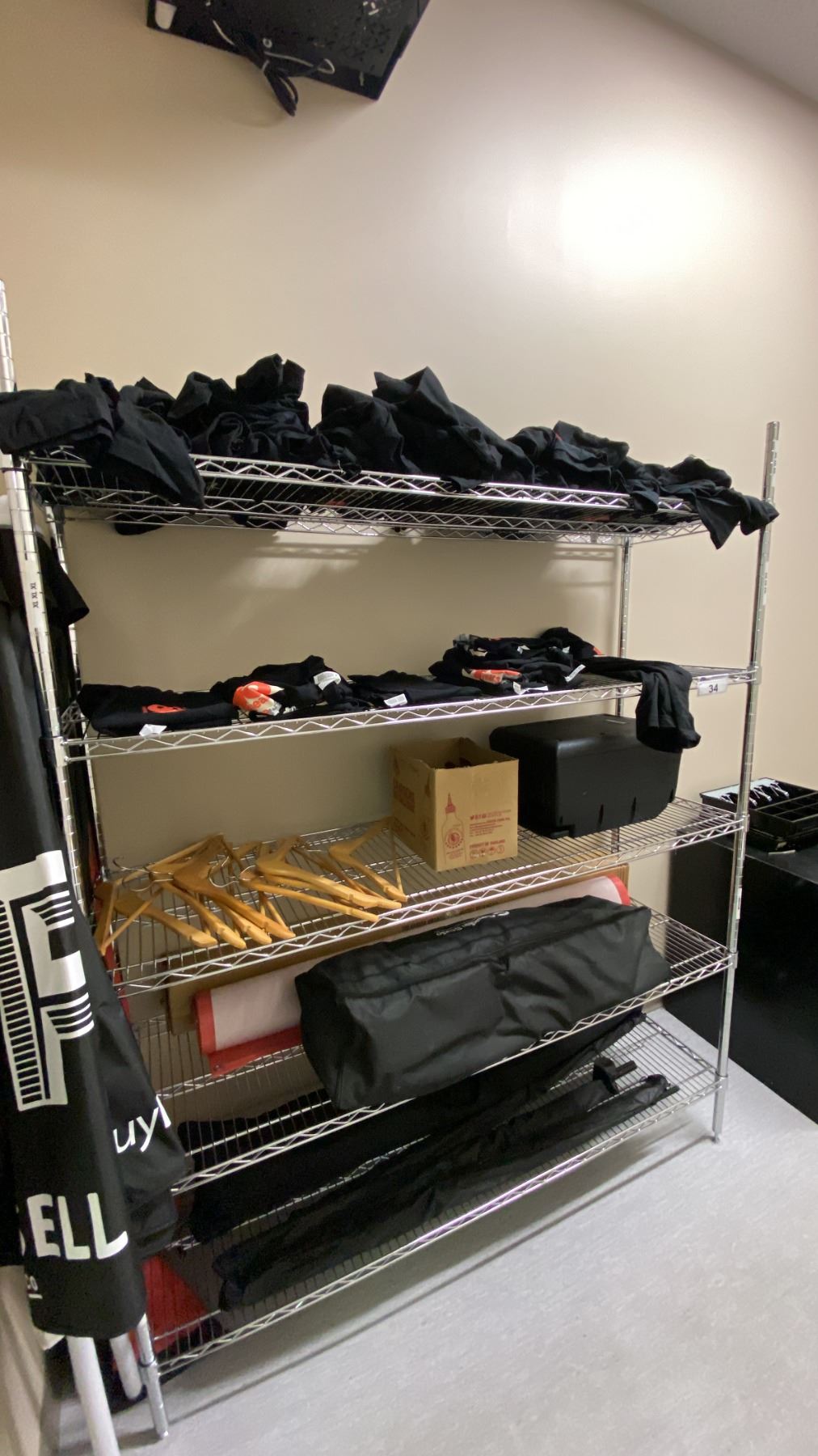 5 TIER METAL SHELF UNIT AND CONTENTS