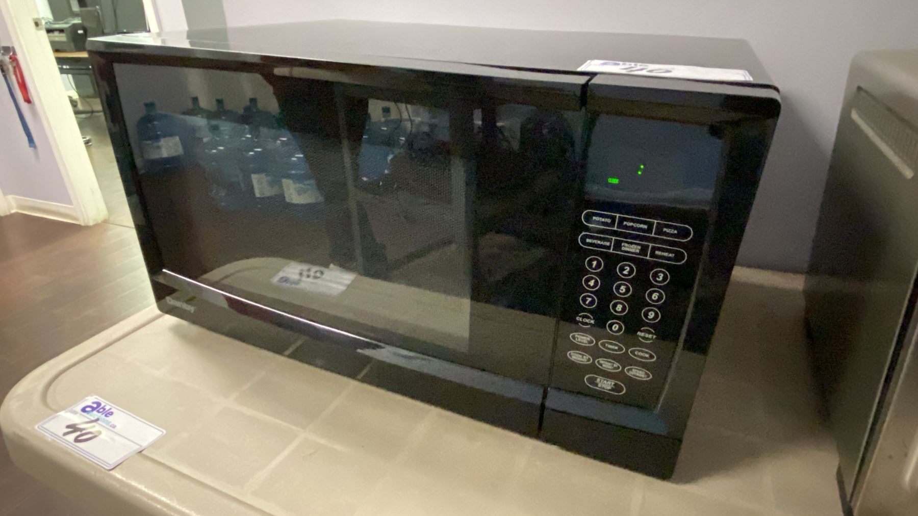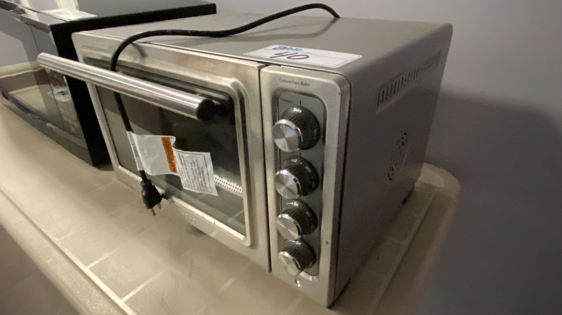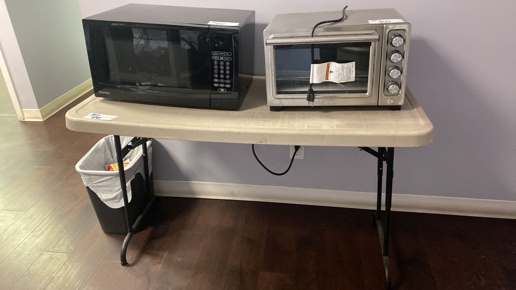 Lot 40 WHITE 2 DOOR FRIDGE, BLACK DANBY MICROWAVE, STAINLESS STEEL KITCHENAID TOASTER OVEN,