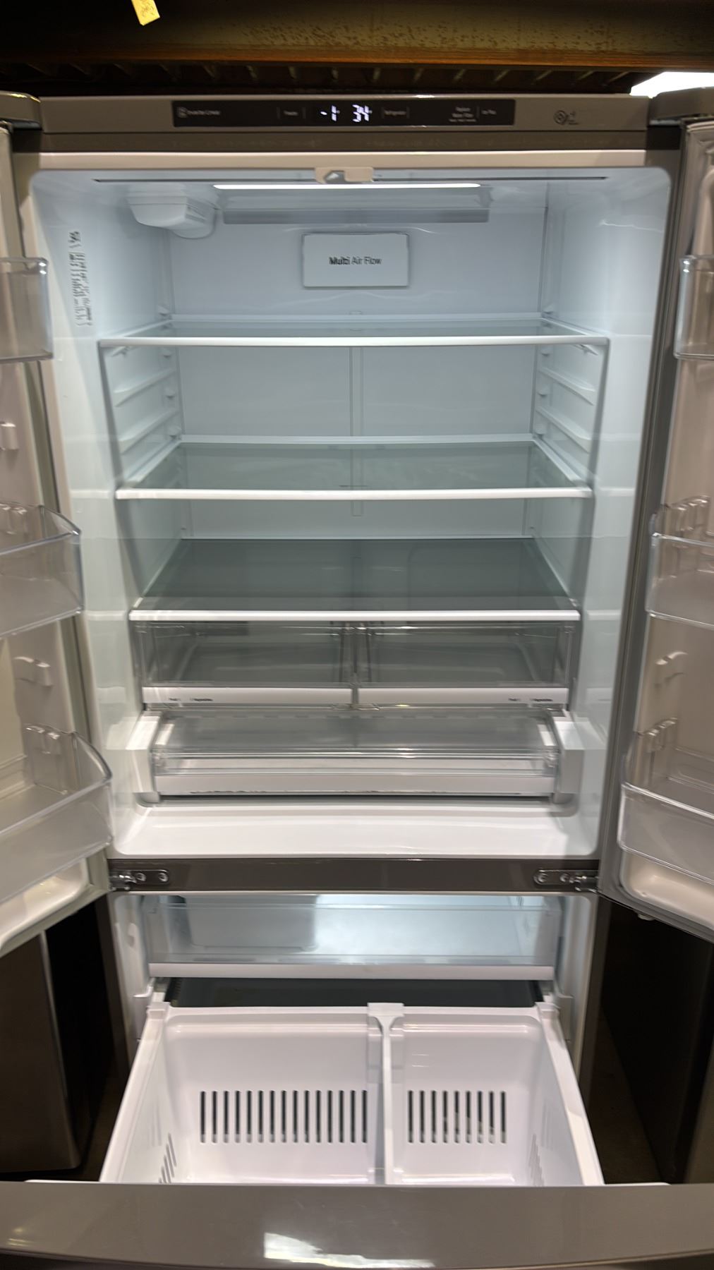 LG STAINLESS STEEL FRENCH DOOR FRIDGE WITH ROLLOUT FREEZER 32.5"W