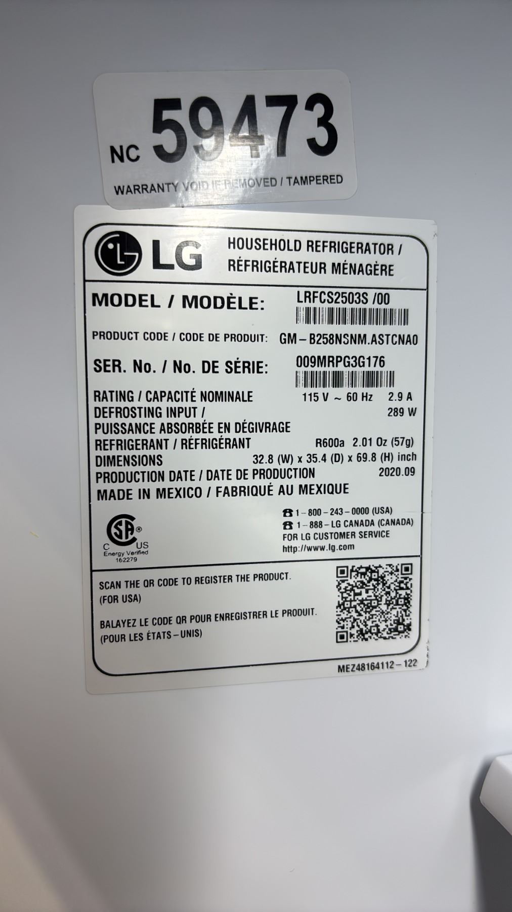 Lot 2 LG STAINLESS STEEL FRENCH DOOR FRIDGE WITH ROLLOUT FREEZER 32.5"W