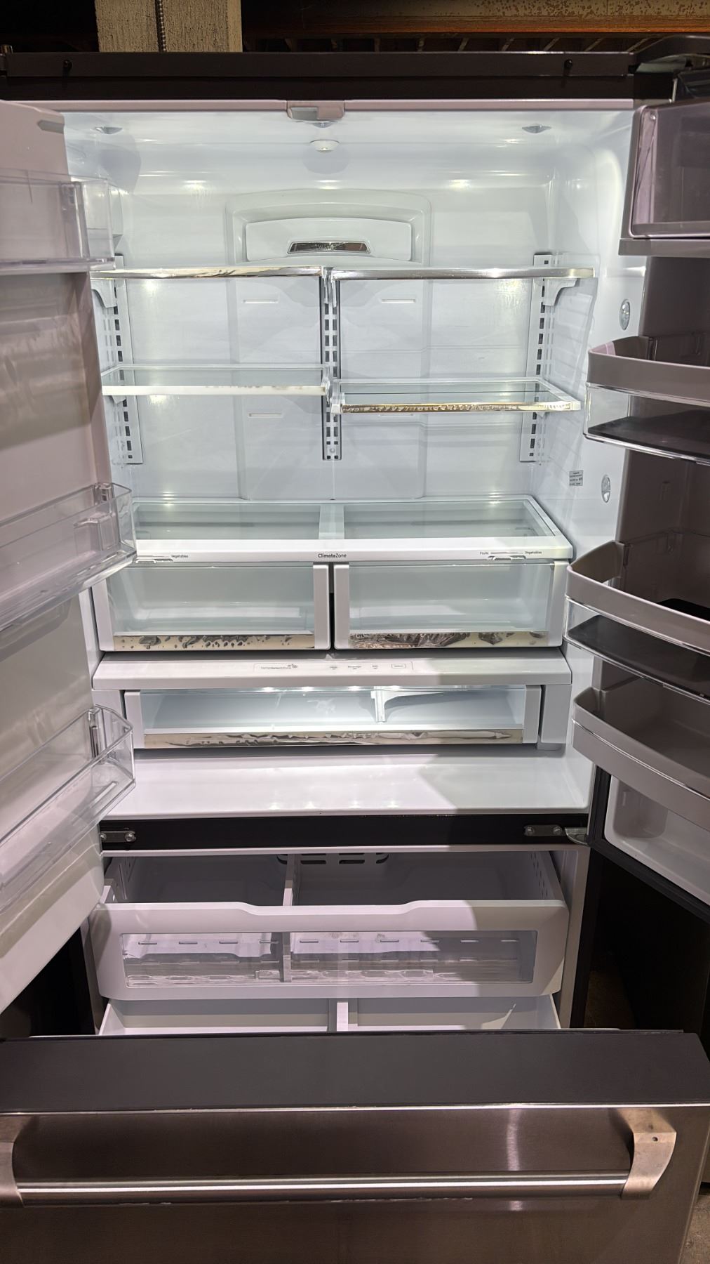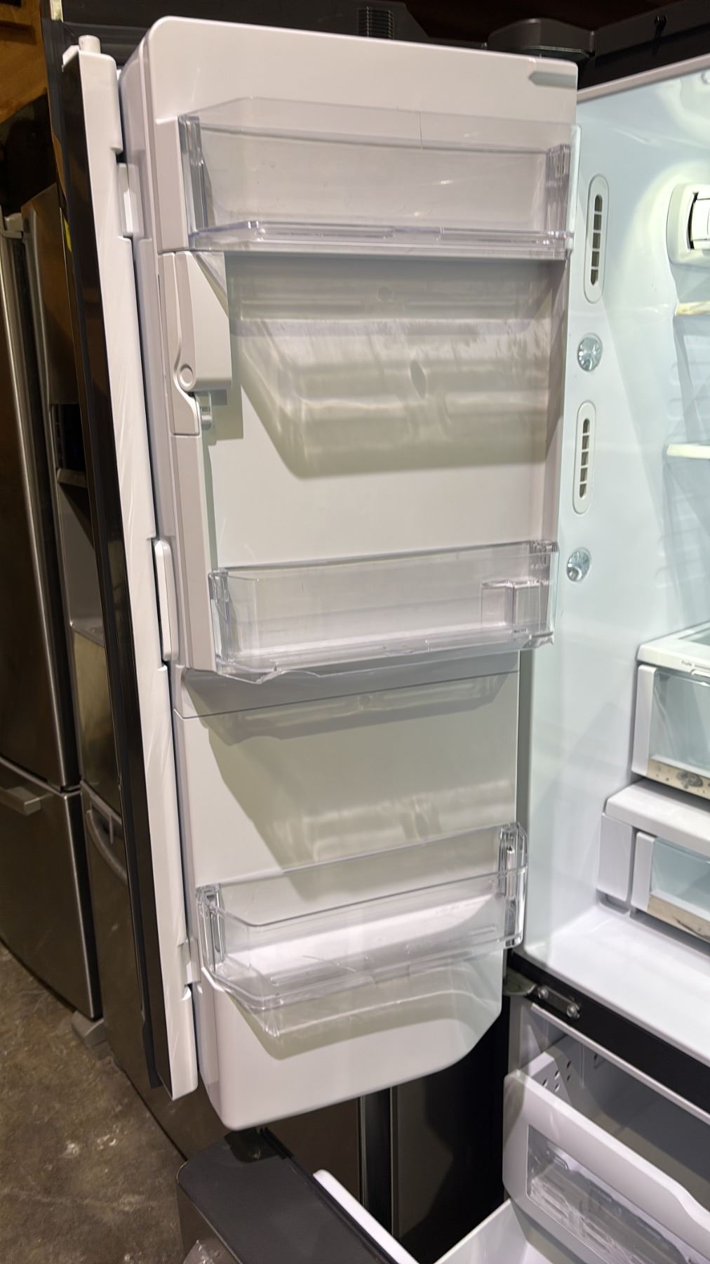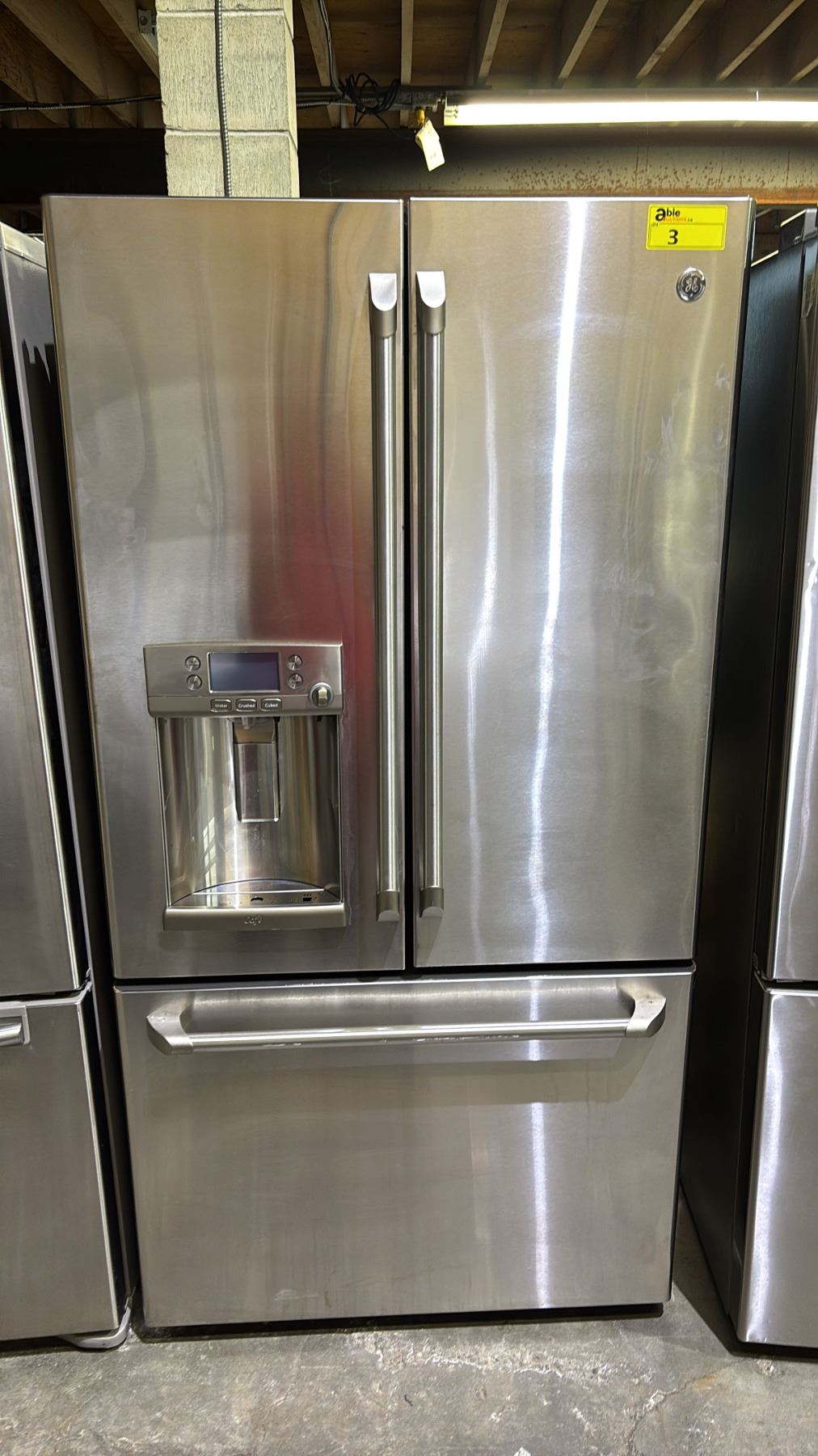 Lot 3 GW STAINLESS STEEL FRENCH DOOR FRIDGE WITH ROLLOUT FREEZER & WATER/ICE DISPENSER 35"W