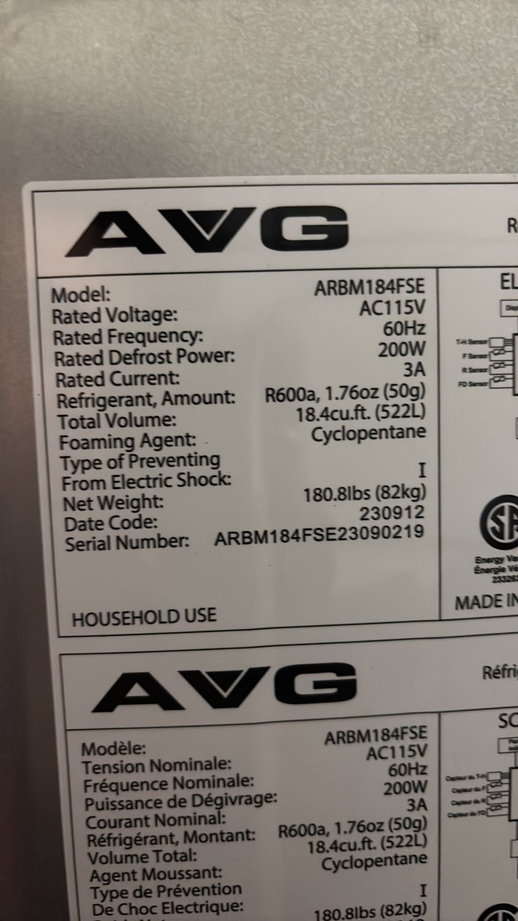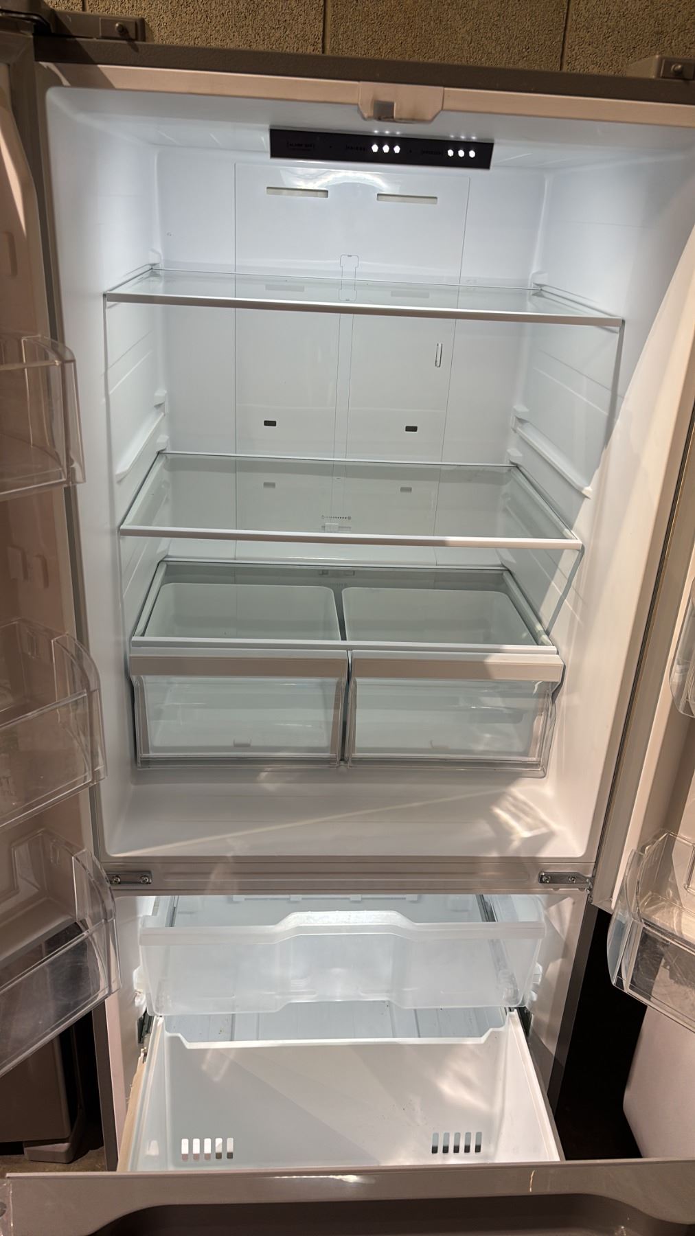 Lot 10 AVG STAINLESS STEEL FRENCH DOOR FRIDGE WITH ROLLOUT FREEZER 29.5"W