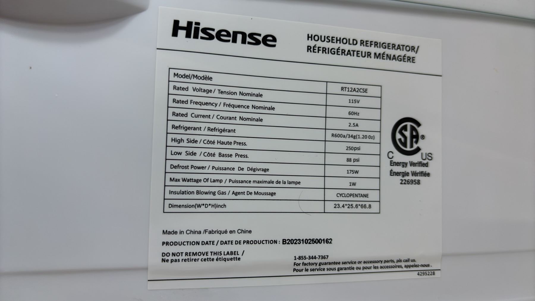 Lot 14 HISENSE SWING OUT FRIDGE 23"W