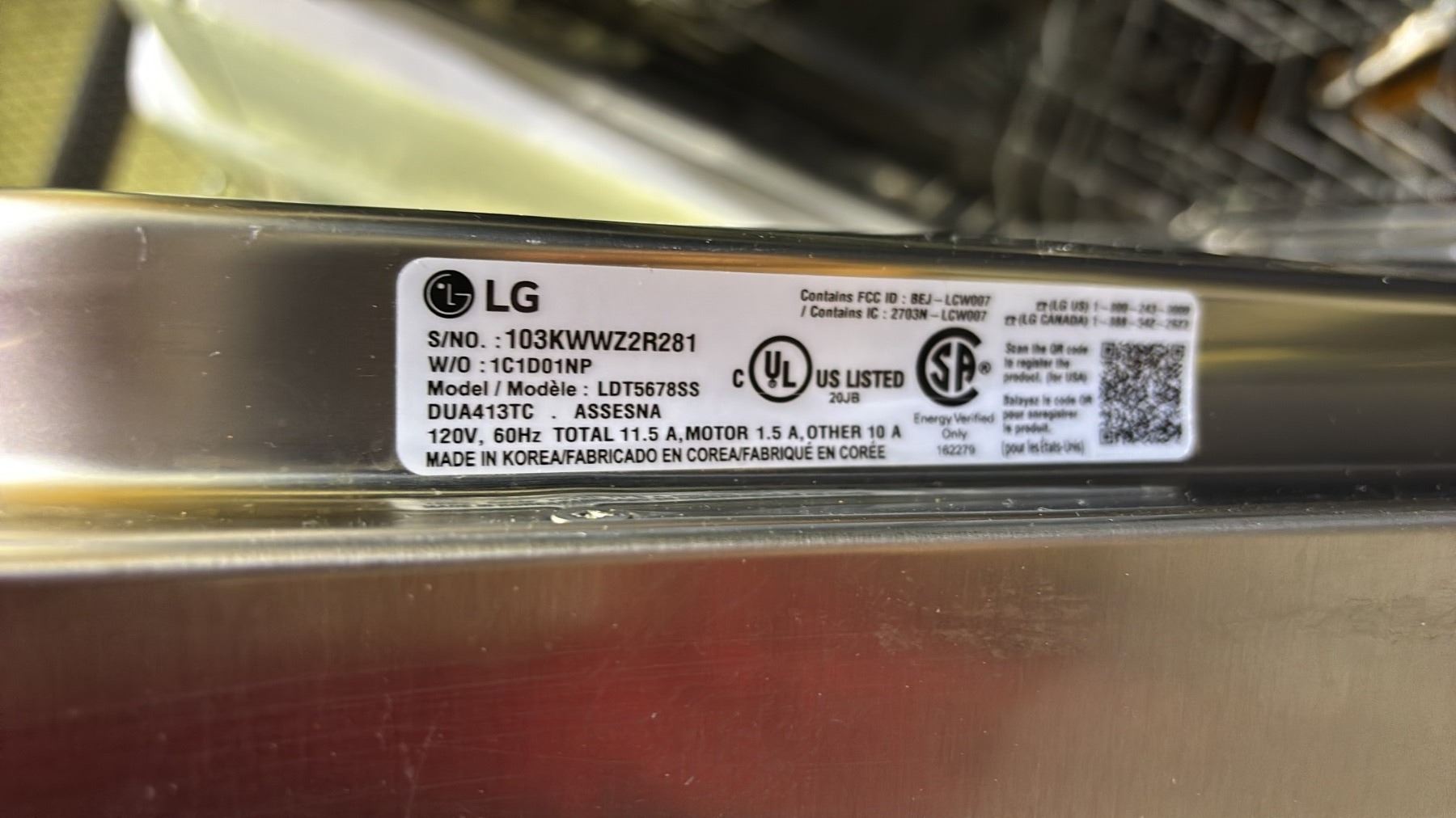 Lot 25 LG STAINLESS STEEL DISHWASHER