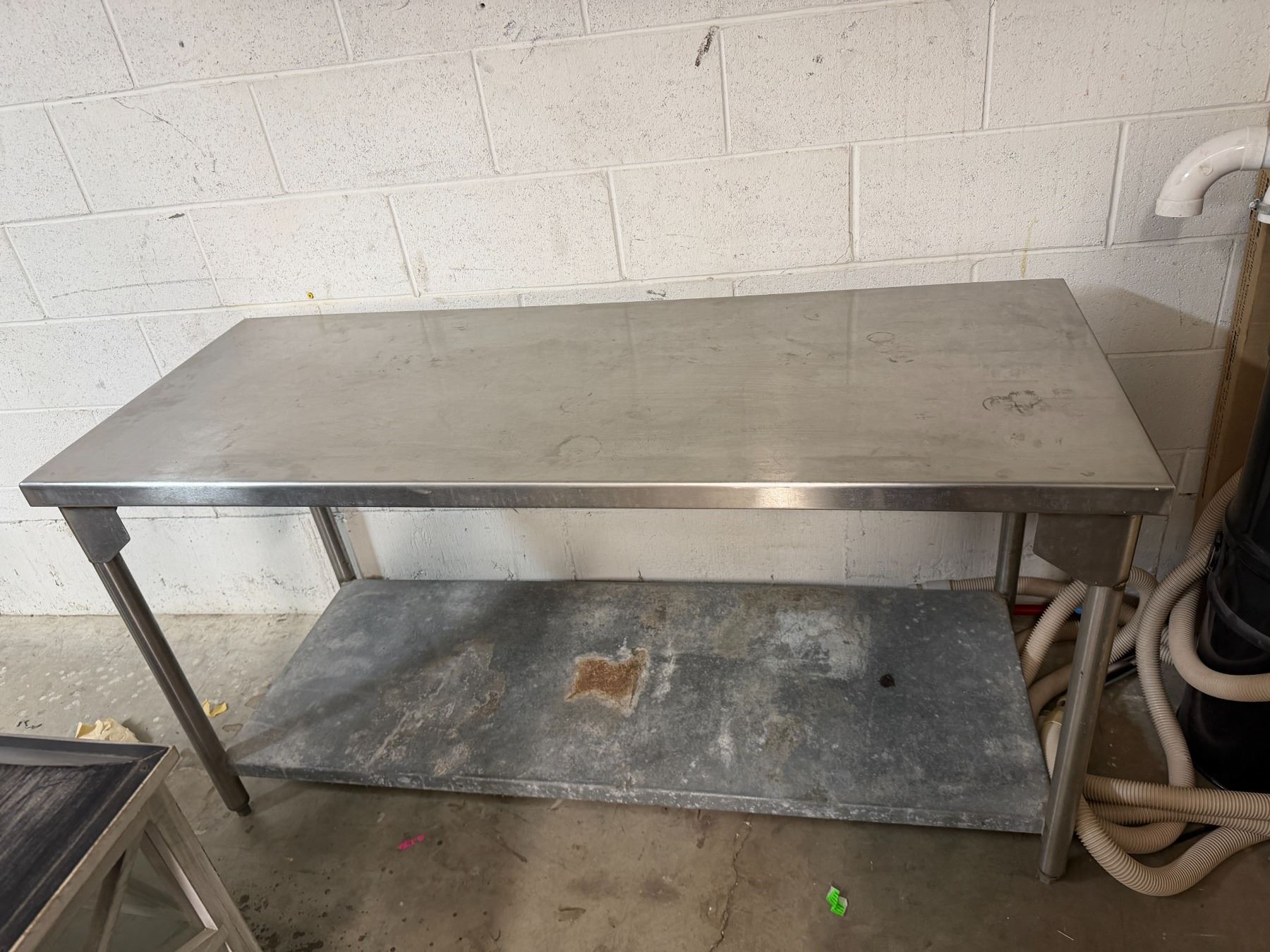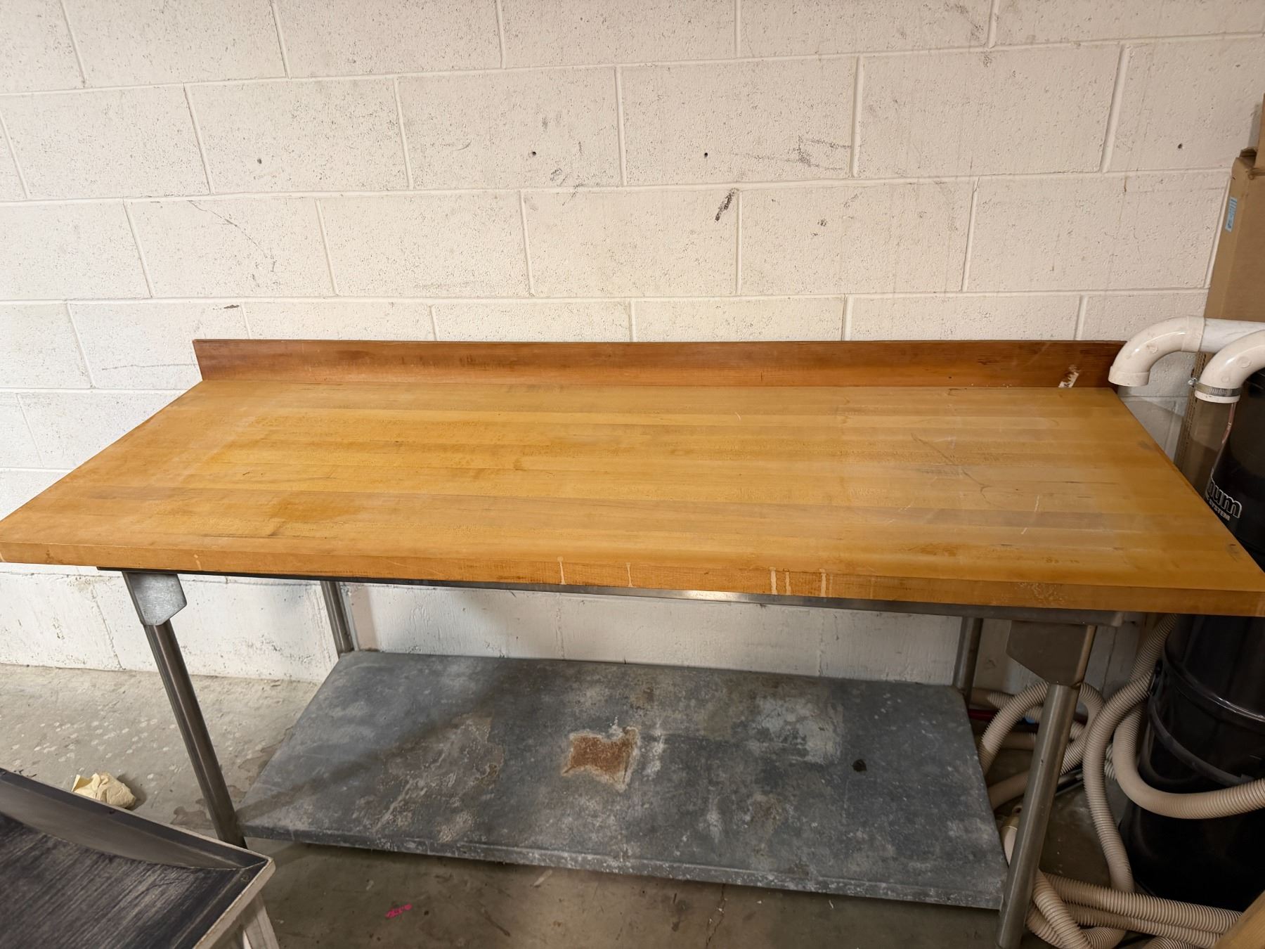 Lot 468 Stainless steel table with wood prep top 60" x 24" x 31" tall
