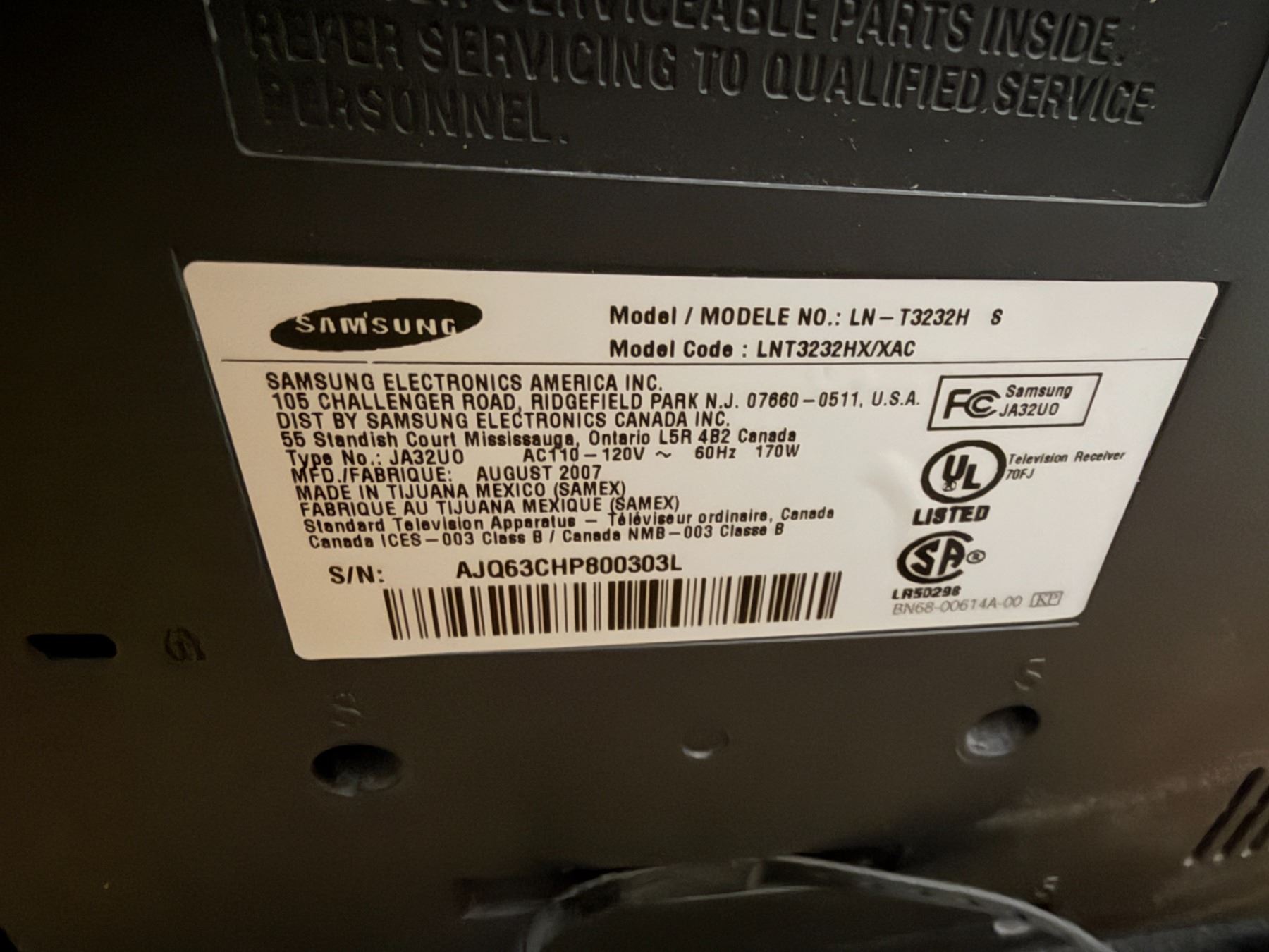 Samsung 32 inch TV needs power cord