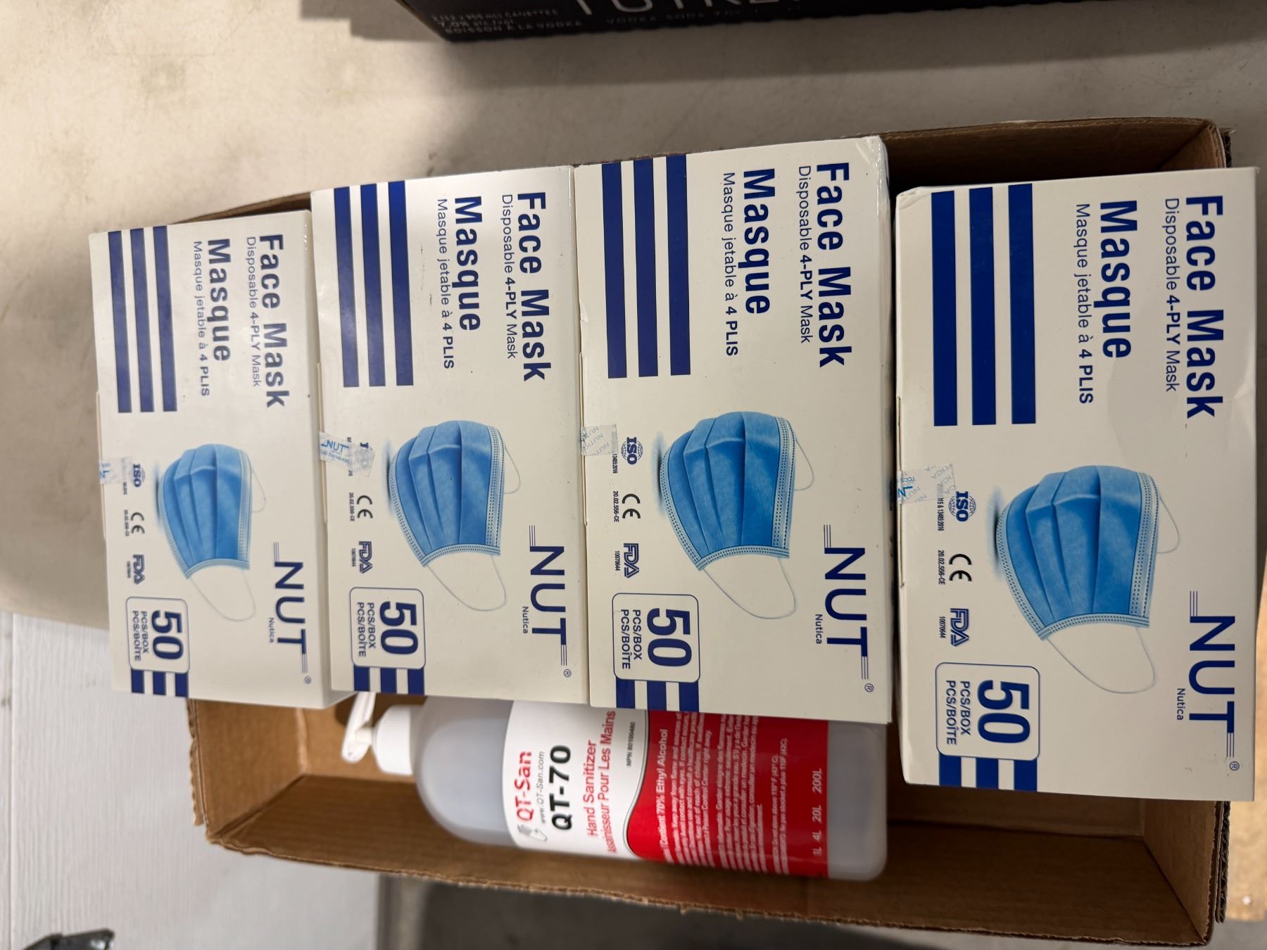 Lot 677 Disposable face masks and hand sanitizer