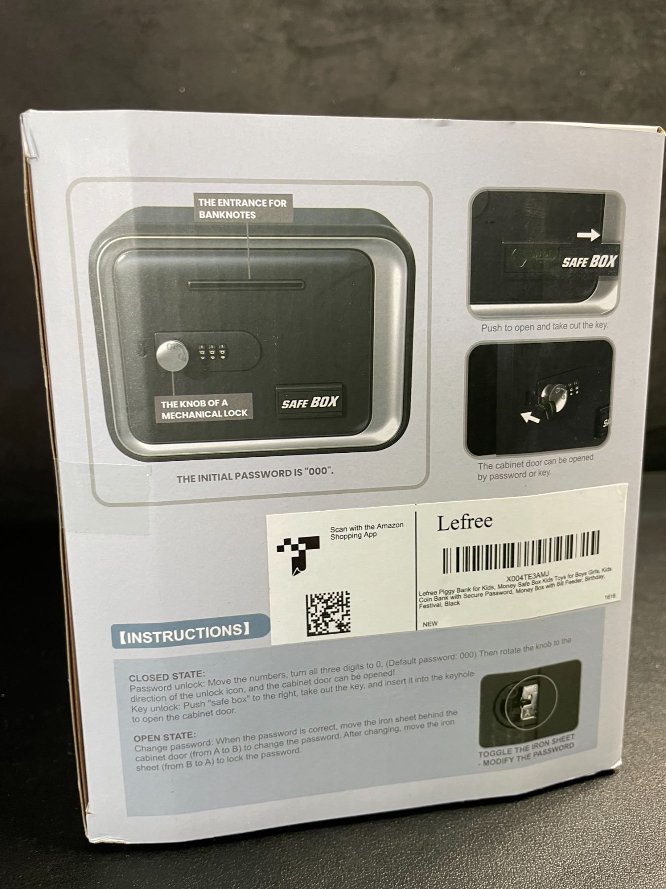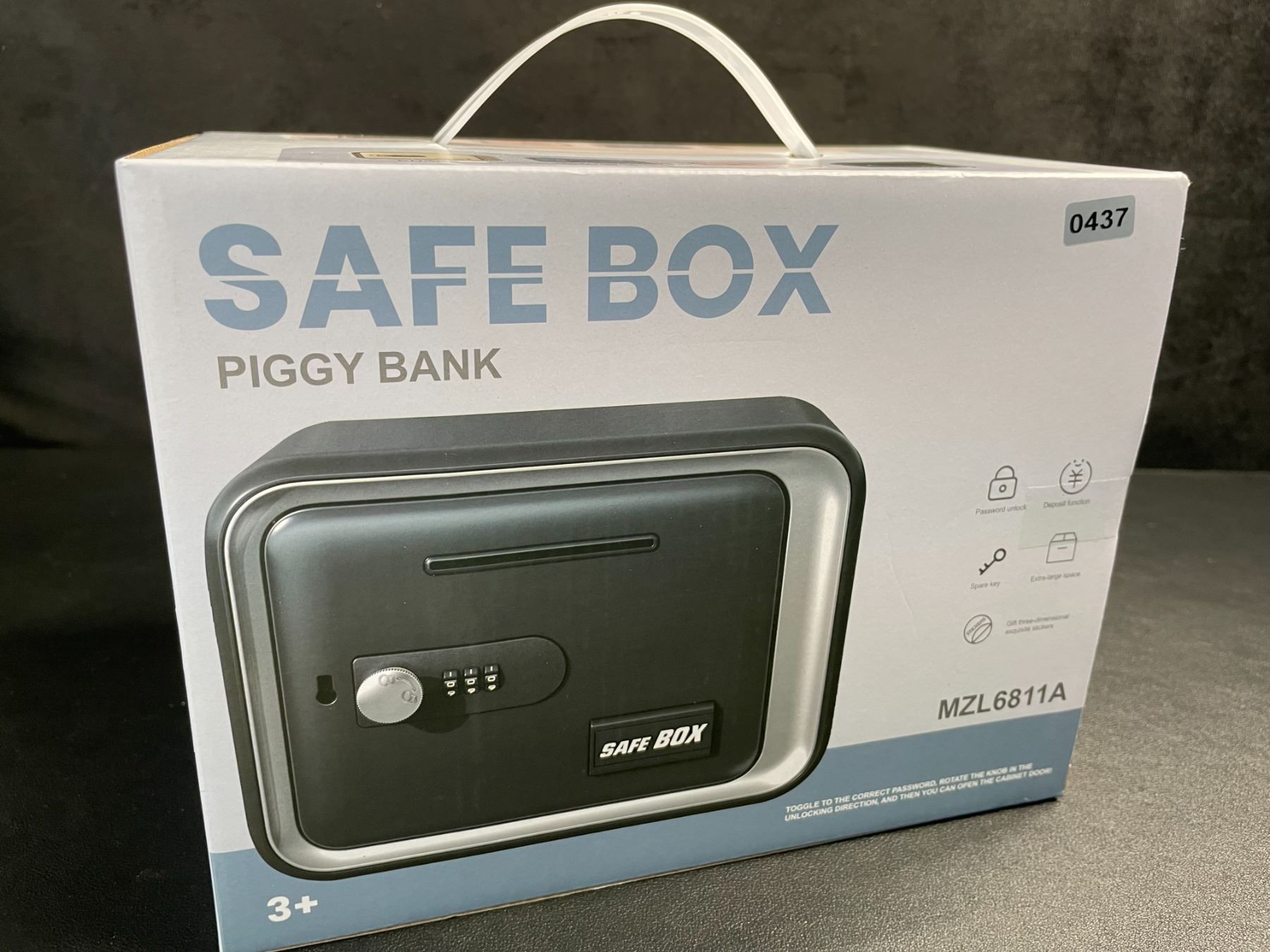 Lot 437 Safe Box/Keepsake Locking Box with Key/Passcode (Black) Money Safe/{Piggy Bank Box - New