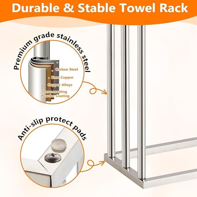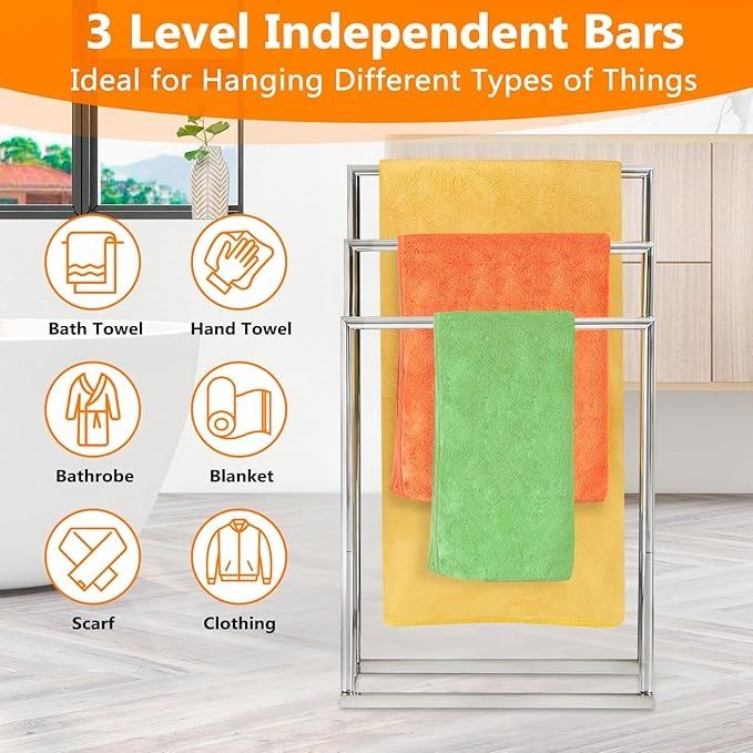 - Freestanding Towel Rack, 3 Tier Stainless Steel Towel Bar Stand for Bathroom, Chrome Plated