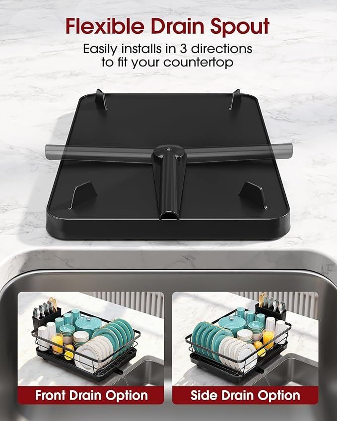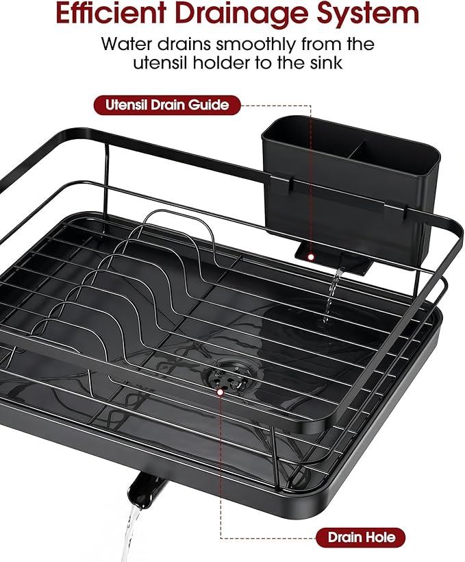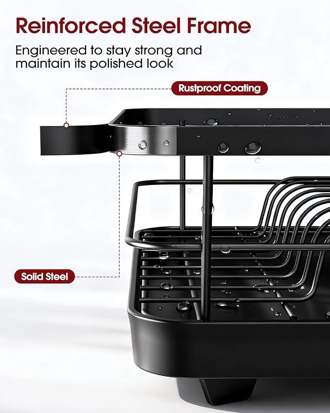 - Sakugi Dish Drying Rack - Compact Dish Racks with Drain Board for Kitchen Counter, Durable Stainless Steel Dish Rack Used in Sink & on Countertop, Dark Black, Large