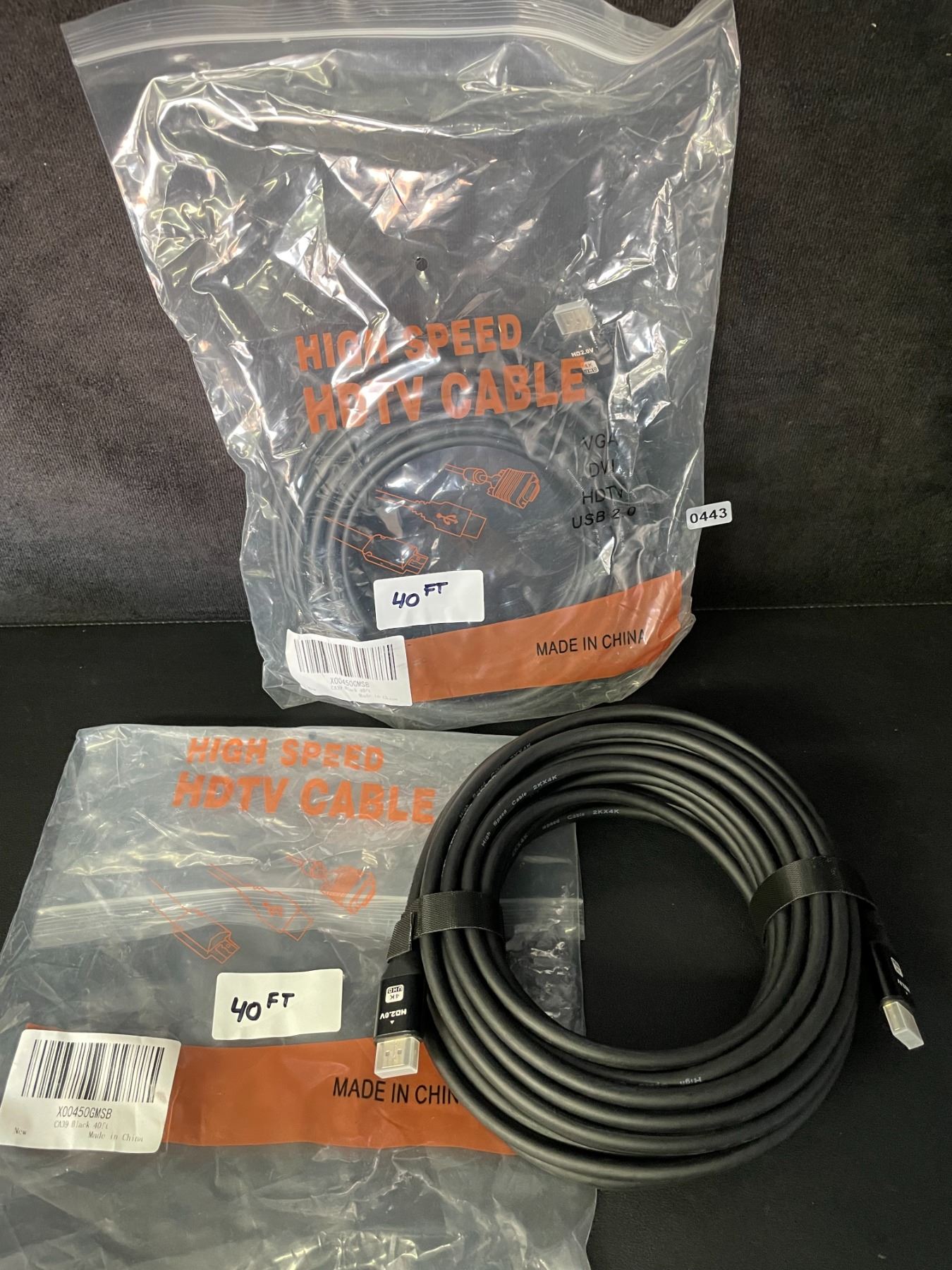 Lot 443 Lot of 2 High-Speed 4K UHD 40FT-Long HDMI Cords - Brand New
