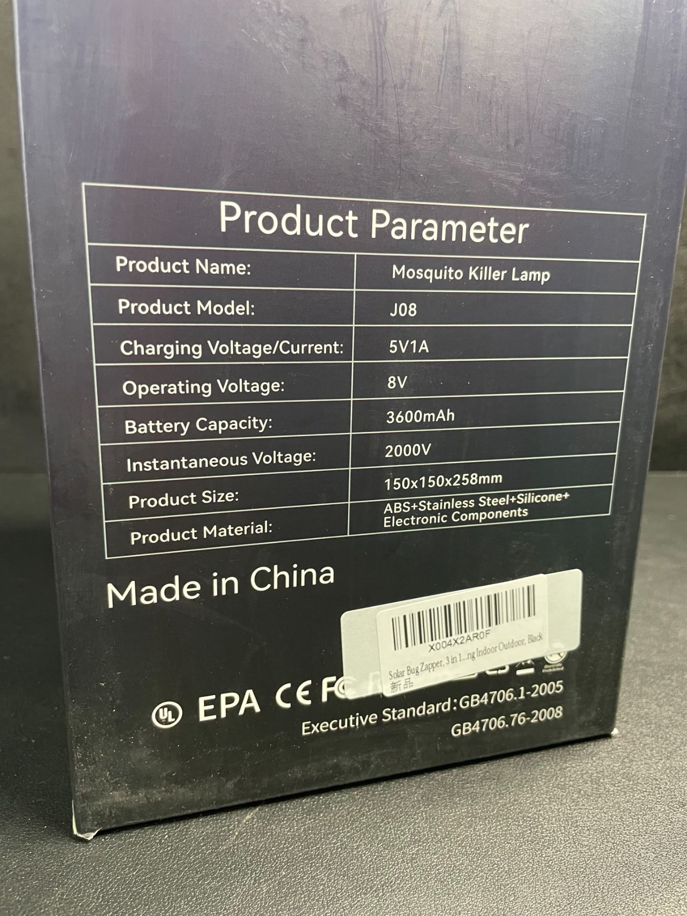- J08 Solar bug zapper indoor, 3 in 1 uv mosquito killer lamp, 4000mah 4200v electric fly zapper, usb rechargeable insect killer traps for office kitchen bedroom garden camping outdoor, black