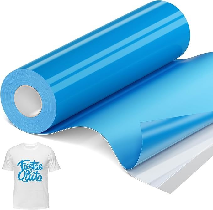 - Lake Blue Heat Transfer Vinyl, 12" x35ft Iron On HTV Compatible With Cricut All Machines, Heat Press/Iron-On Vinyl