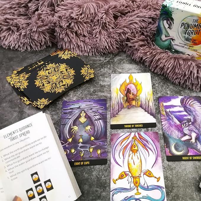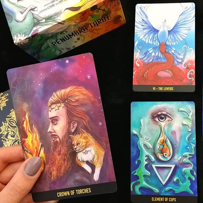 - Penumbra Tarot Cards Deck with 78 Beautifully Illustrated Tarot Cards Exploring The Arcana of Tarot | Keepsake Box, Deluxe Full-Color Guidebook, Gold Foil Stamped Backs, and Gold Gilded Edges