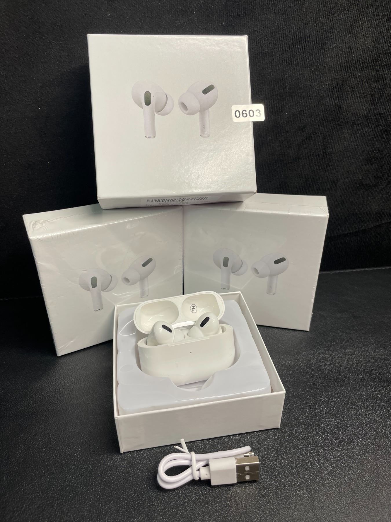 Lot 603 Lot of 3 Air-Pod Style Wireless Bluetooth Earbuds with Charging Cases - New Sealed!