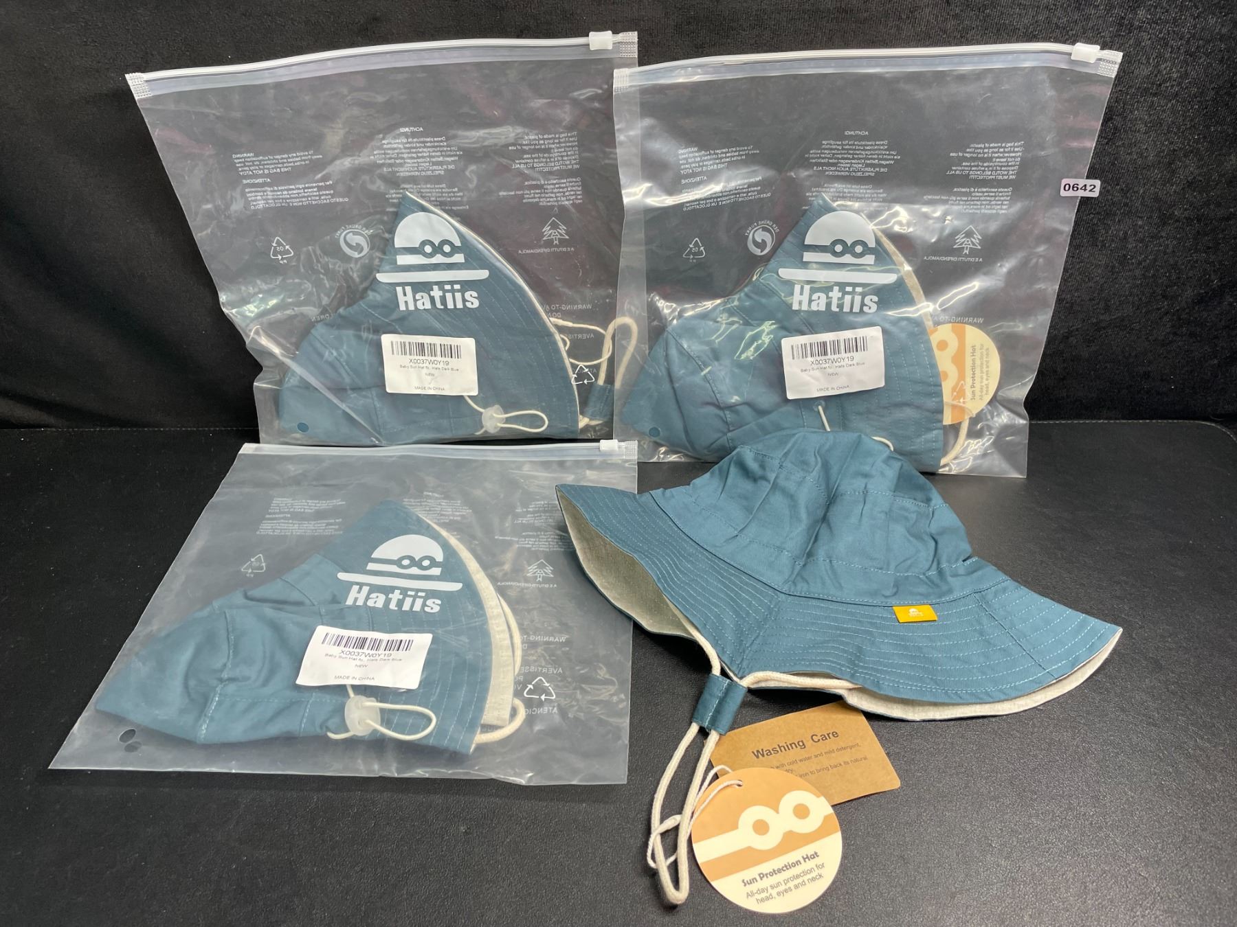 Lot 642 Lot of 4 Hatiis Baby/Toddler/Kids Sun Hats - UPF 50+ Sun Protection Bucket Hats (Dark Blue) - New