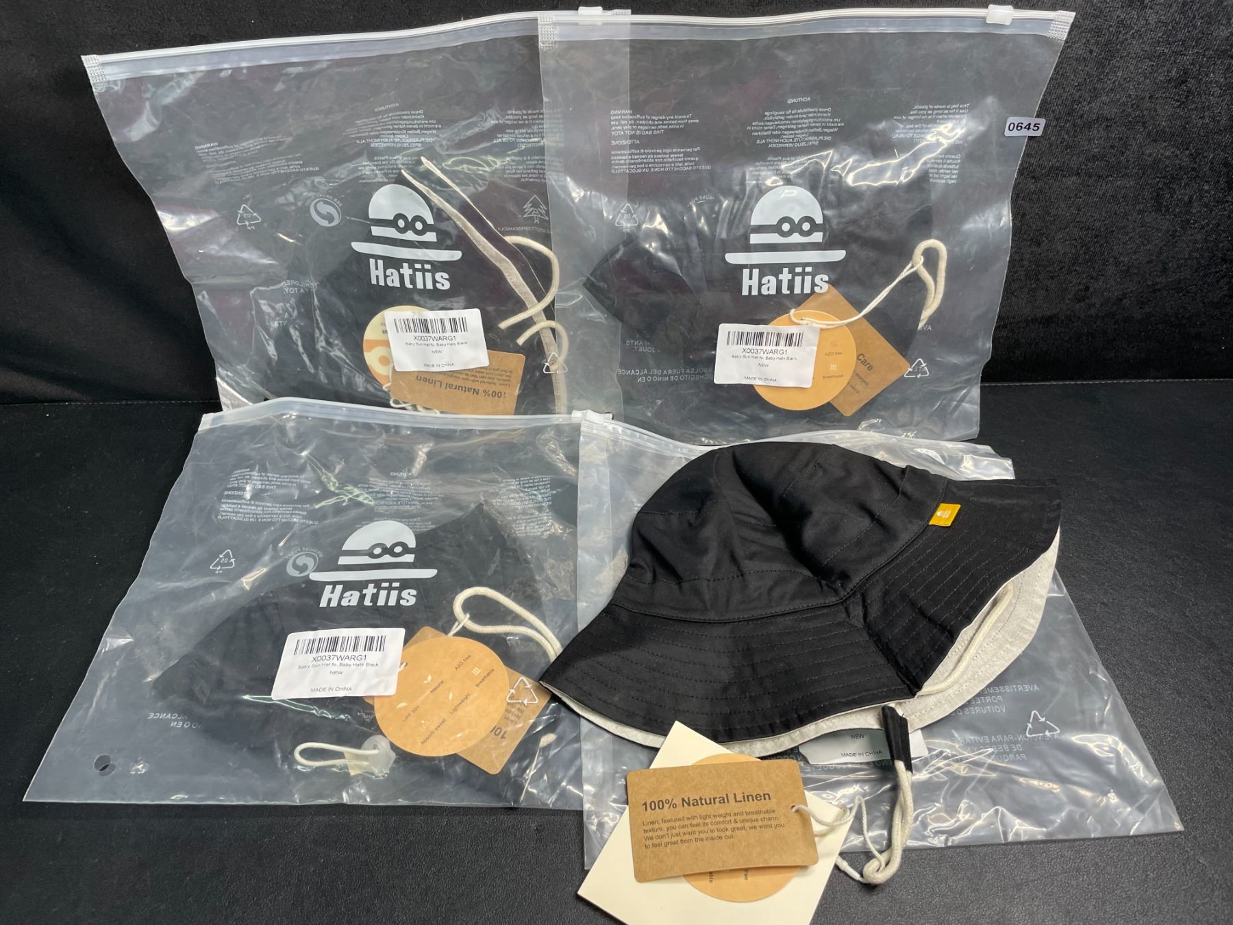 Lot 645 Lot of 4 Hatiis Baby/Toddler/Kids Sun Hats - UPF 50+ Sun Protection Bucket Hats (Black) - New
