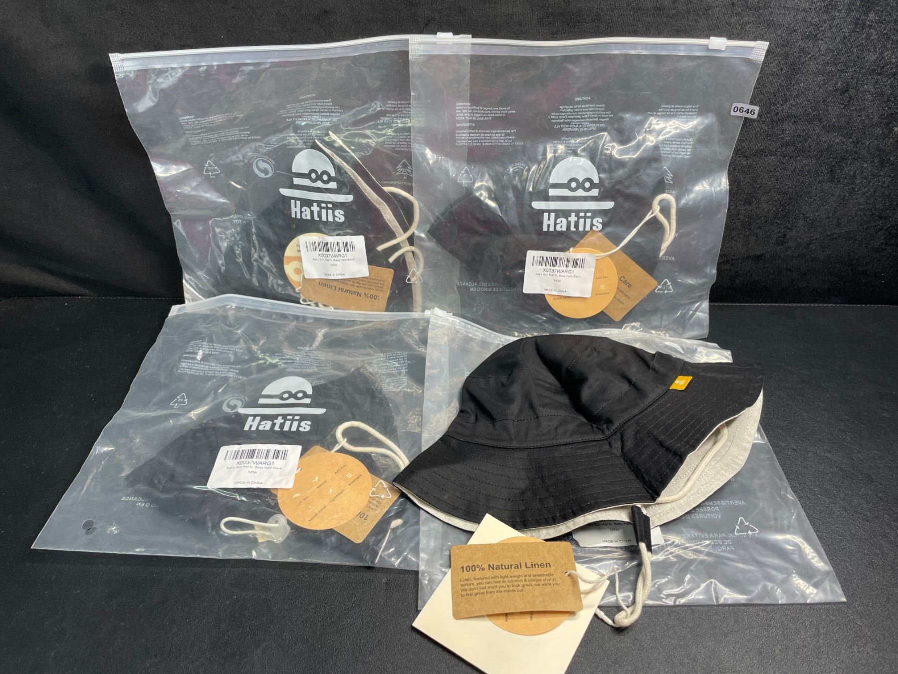 Lot 646 Lot of 4 Hatiis Baby/Toddler/Kids Sun Hats - UPF 50+ Sun Protection Bucket Hats (Black) - New
