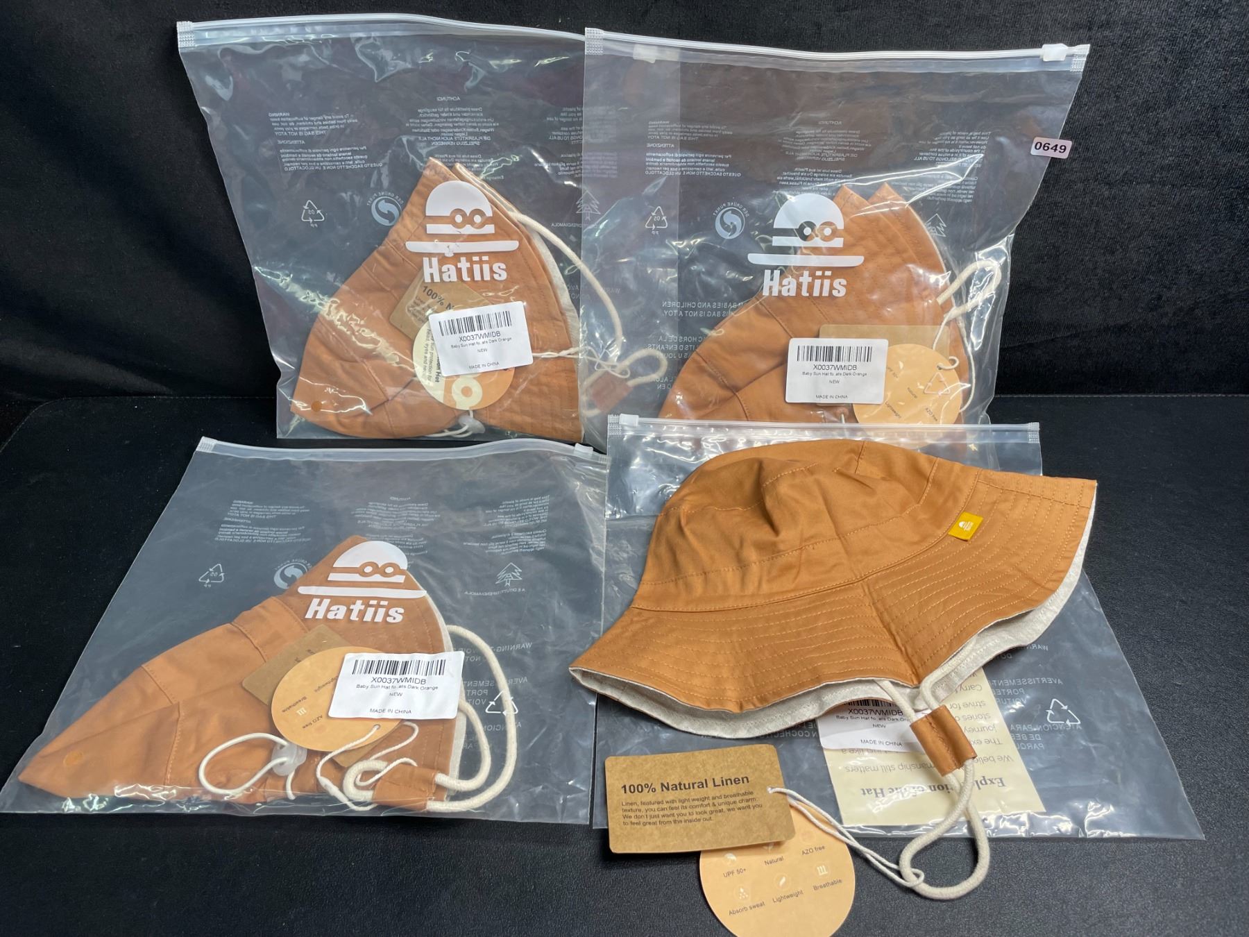 Lot 649 Lot of 4 Hatiis Baby/Toddler/Kids Sun Hats - UPF 50+ Sun Protection Bucket Hats (Dark Orange) - New