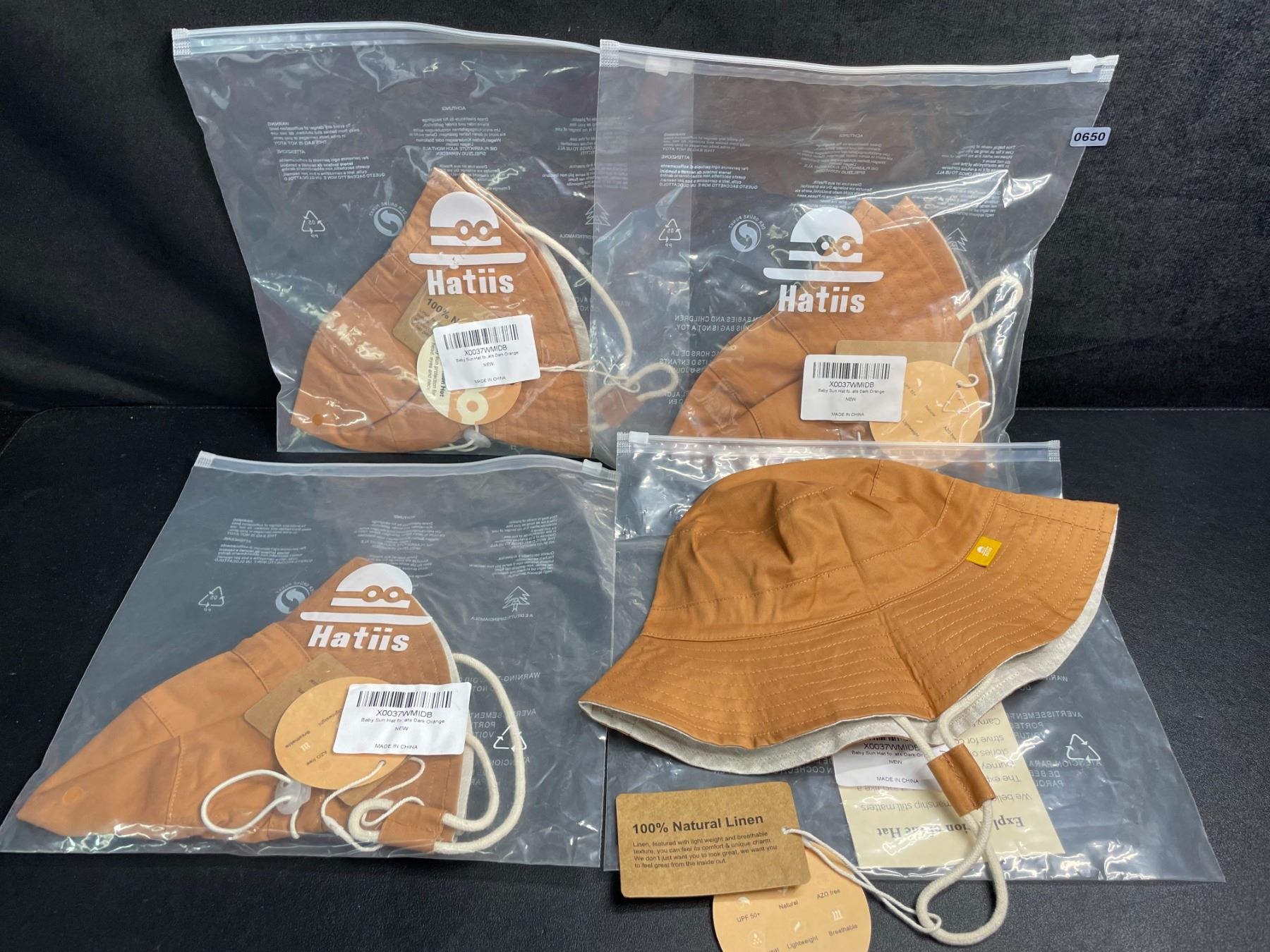 Lot 650 Lot of 4 Hatiis Baby/Toddler/Kids Sun Hats - UPF 50+ Sun Protection Bucket Hats (Dark Orange) - New