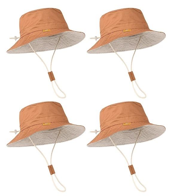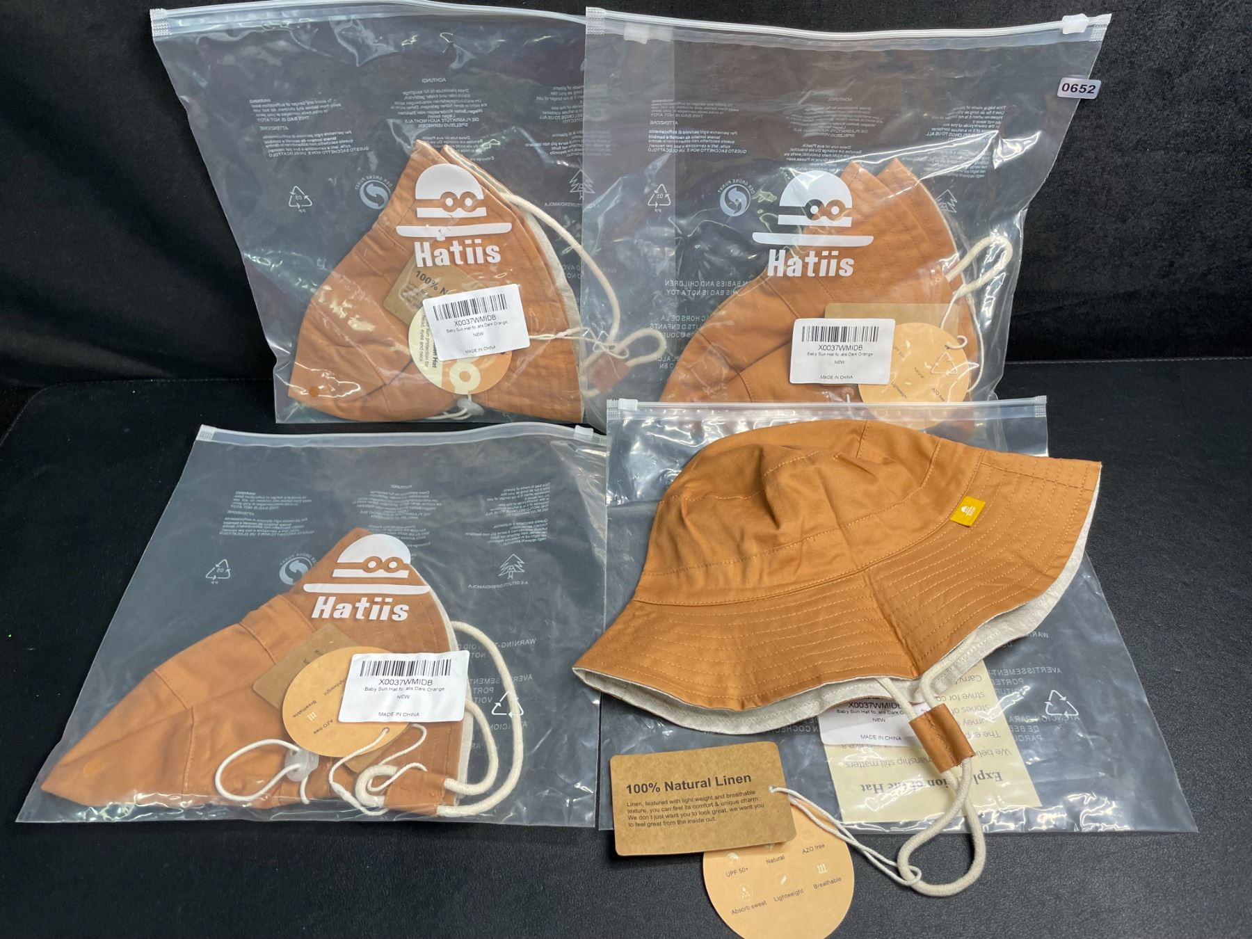 Lot 652 Lot of 4 Hatiis Baby/Toddler/Kids Sun Hats - UPF 50+ Sun Protection Bucket Hats (Dark Orange) - New
