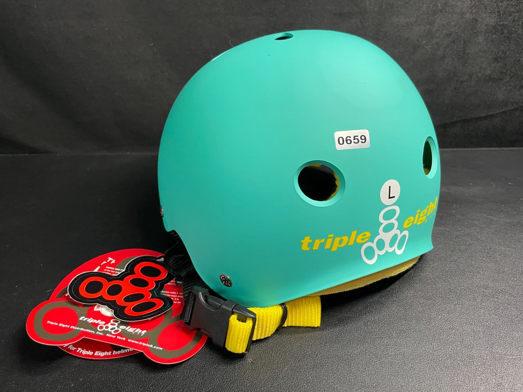 Lot 659 Triple Eight Certified Sweatsaver Bike/Sports Helmet - Size L- Teal/Yellow - New with Tags!