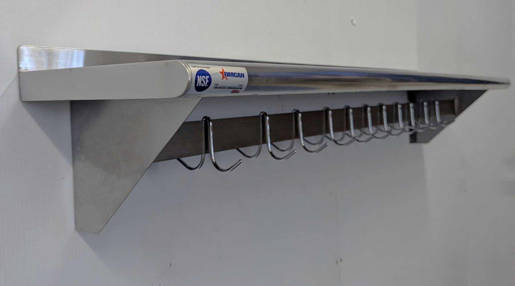 Lot 7 60" x 12" Stainless Pot Rack with Shelf, Omcan 31853