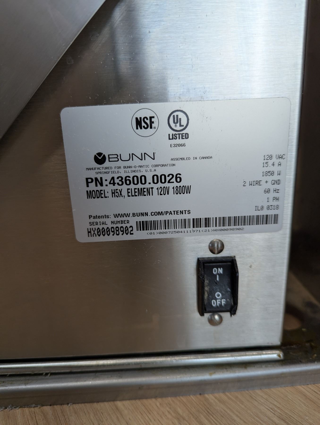 Lot 12 Bunn H5X 5 Gallon Hot Water Dispenser W/Front Wall Mount Bracket